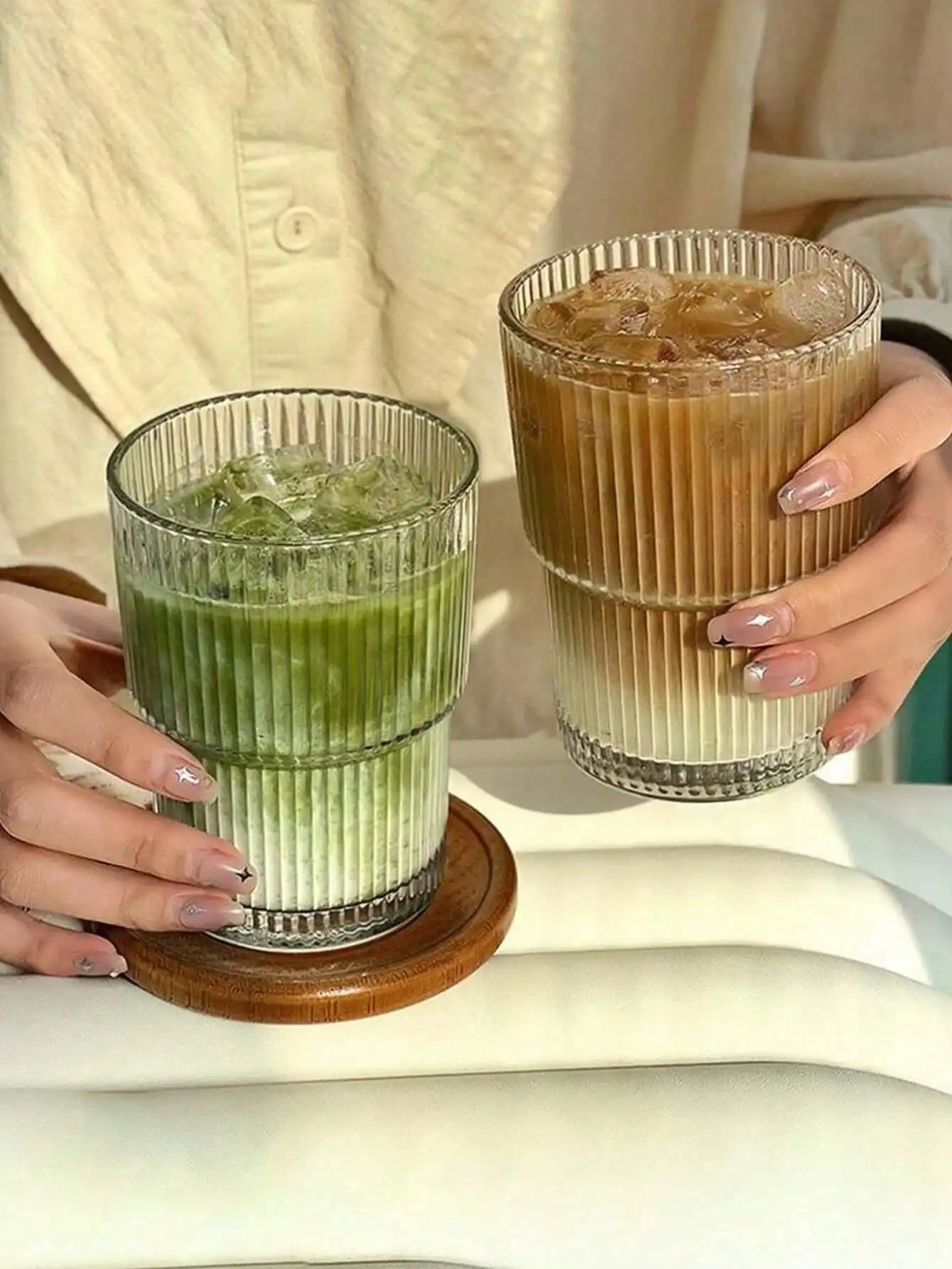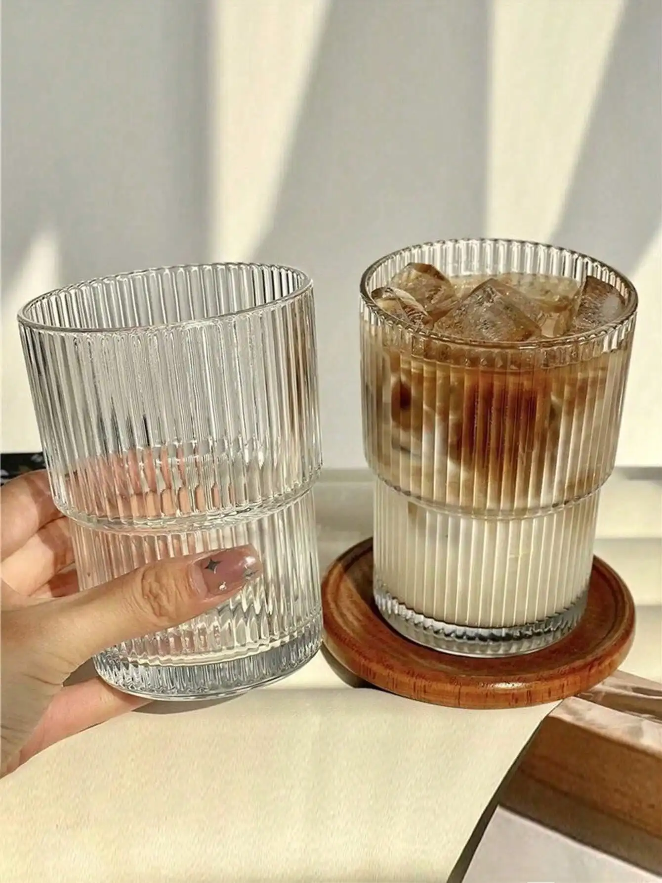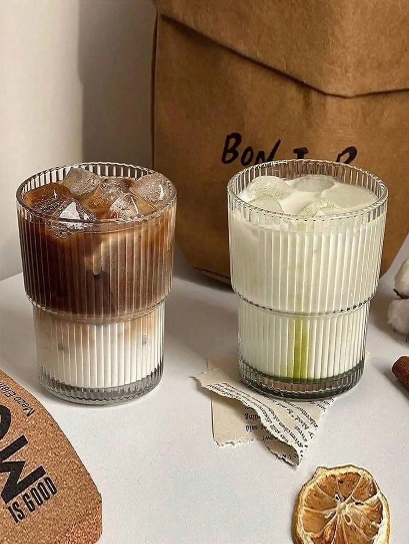 1PC 400ML Vertical Stripes Ins Coffee Glass Lid Straw Water Cup Good-looking Ice American Latte Milk Cup Mugs Iced Coffee Cups