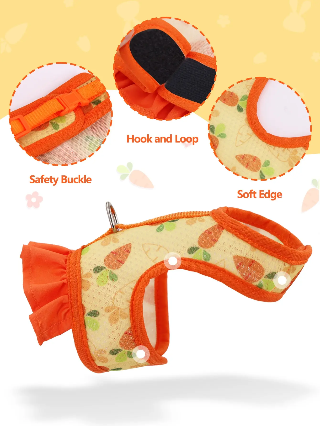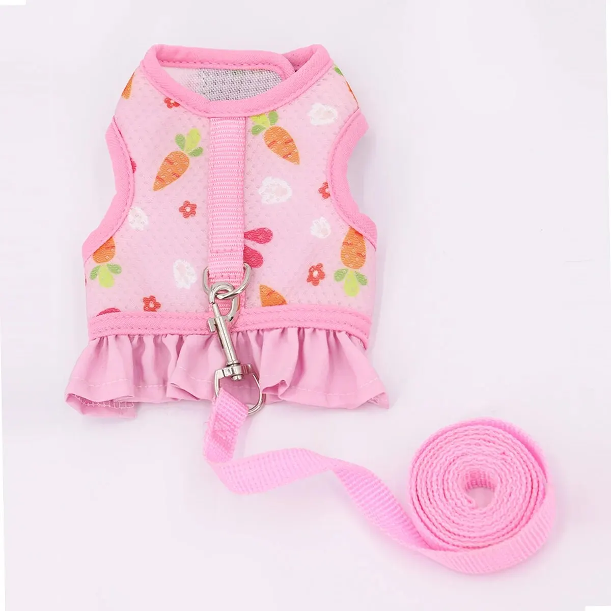 1pc Adjustable Bunny Harness for Walking Runnig Hiking Camping Outdoor – Carrot Pattern Cute Small Animal Harness Leash Set