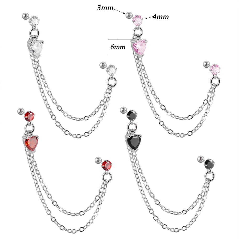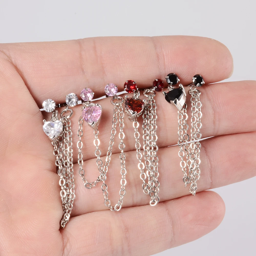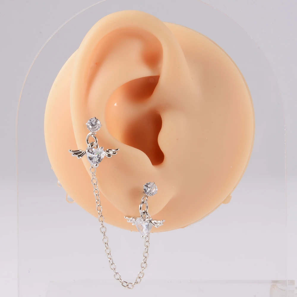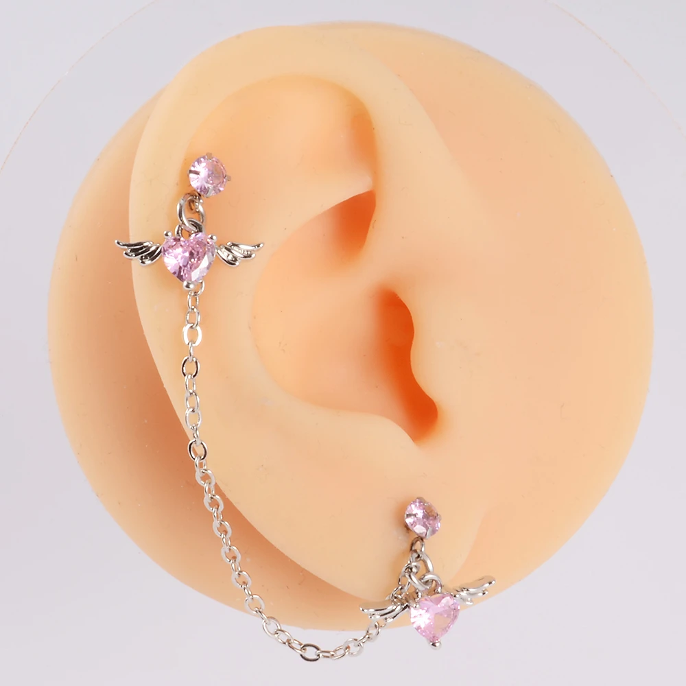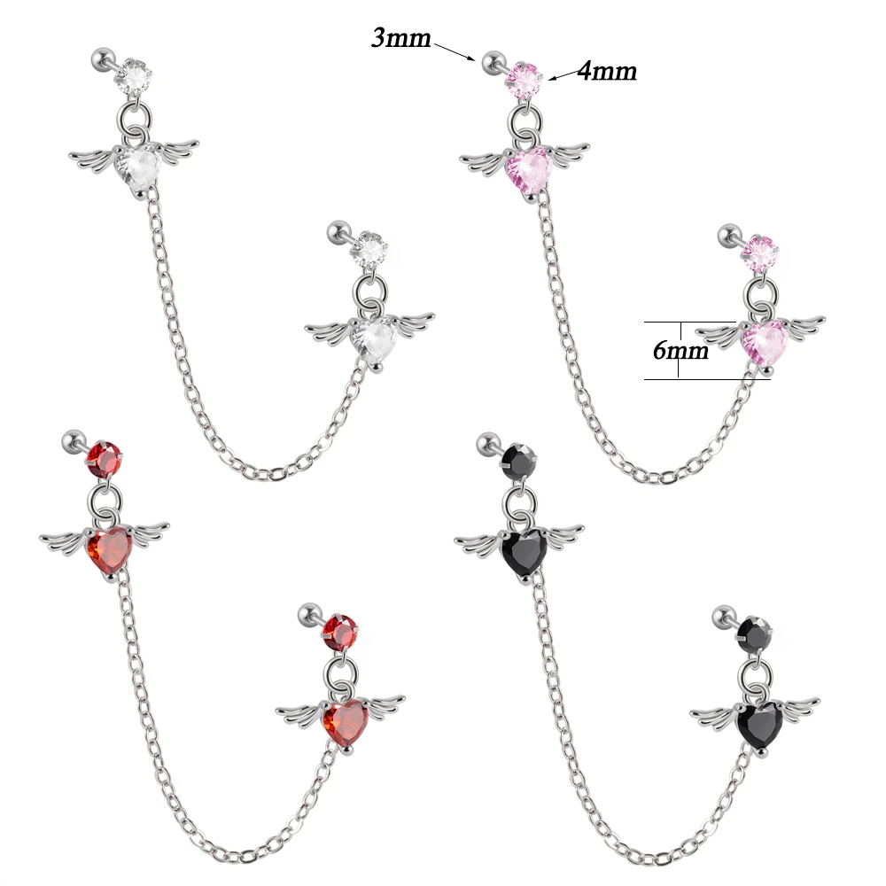 1PC Angel Heart Zircon Tragus Helix Piercing Double Lobe Ear Stud Stainless Steel Tassel Earrings Fashion Women Jewelry