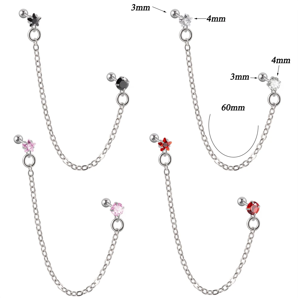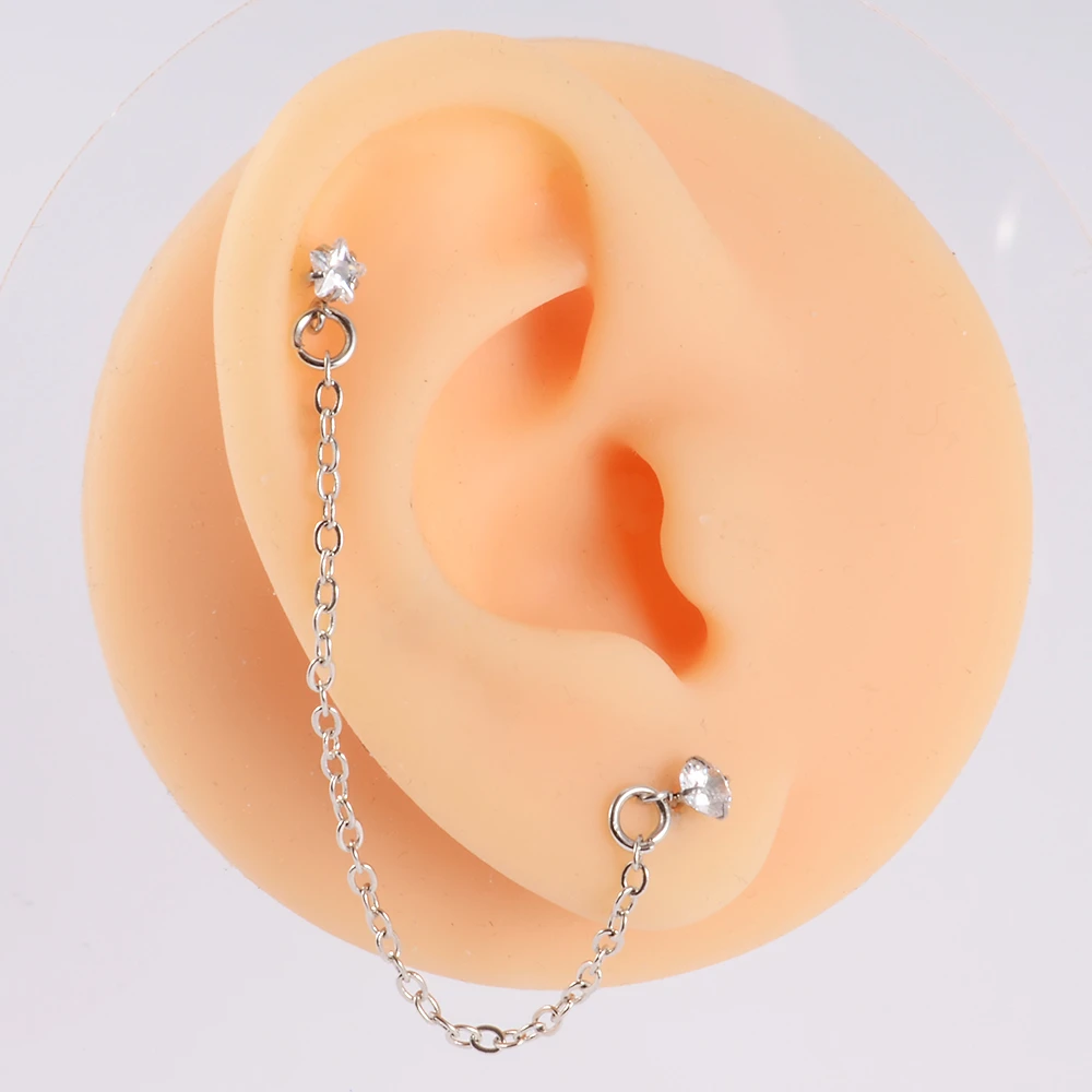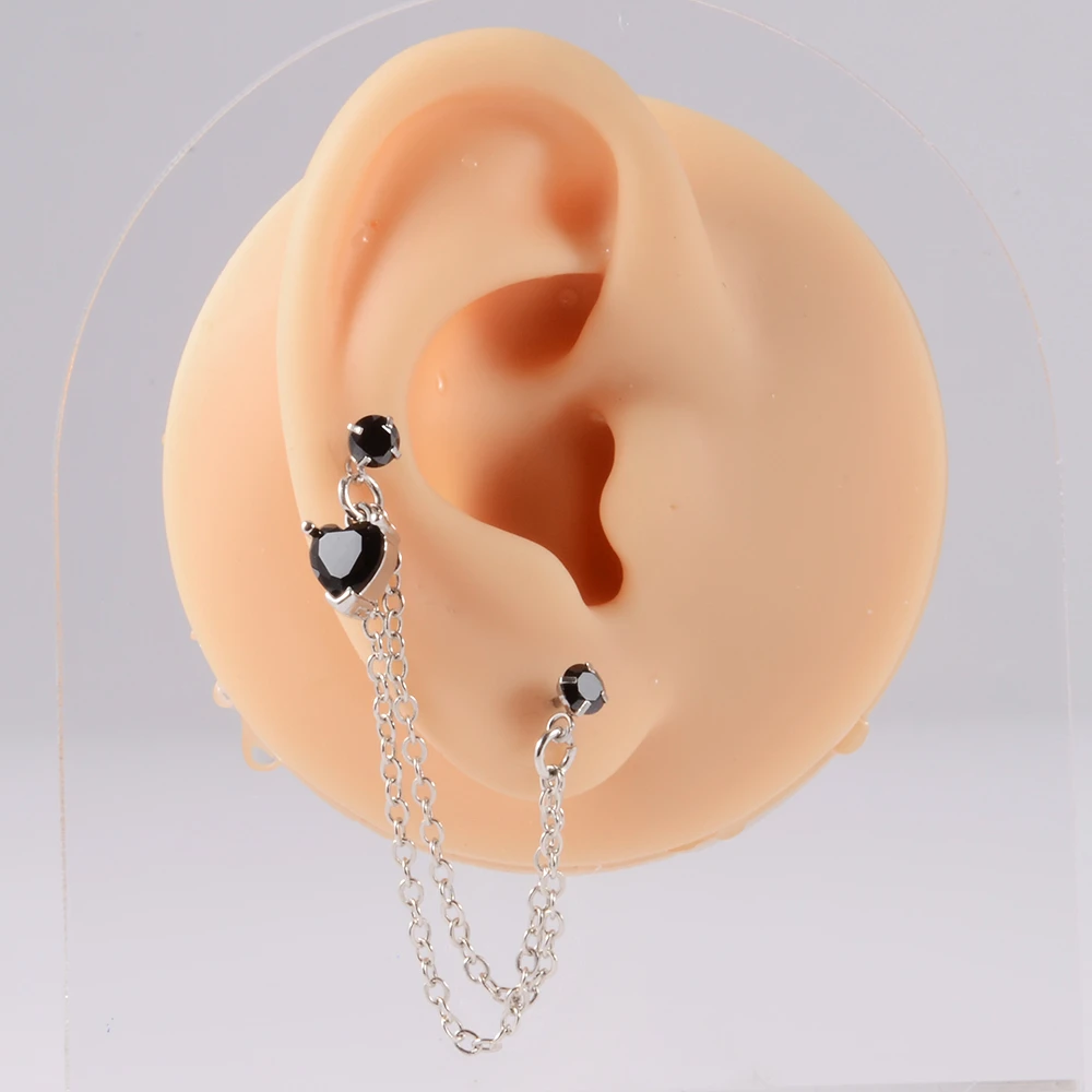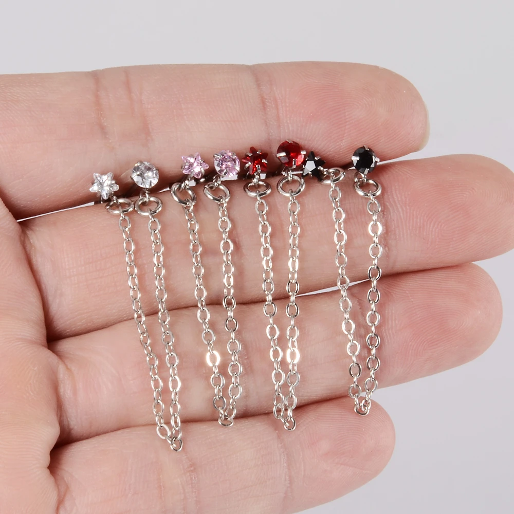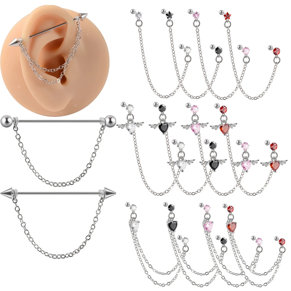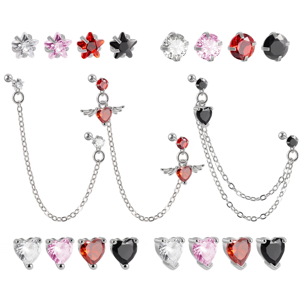 1PC Angel Heart Zircon Tragus Helix Piercing Double Lobe Ear Stud Stainless Steel Tassel Earrings Fashion Women Jewelry