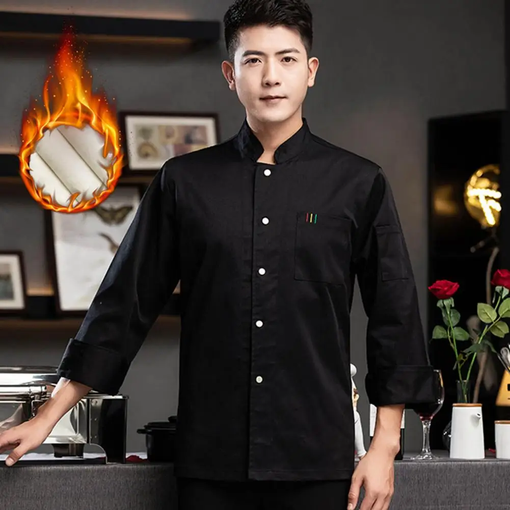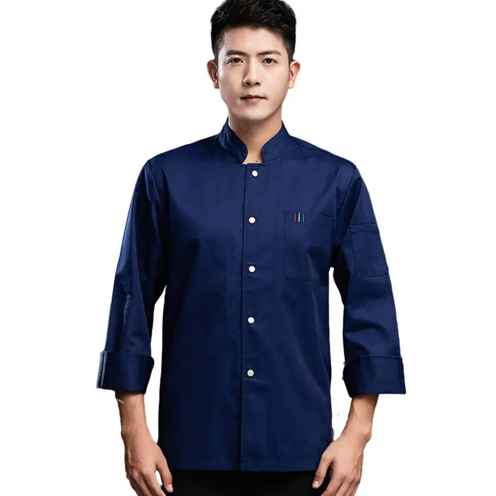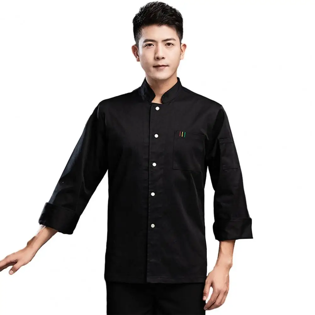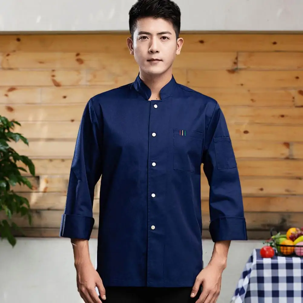 1Pc Autumn Chef Uniform Stand Collar Patch Pocket Chef Uniform Single Breasted Unisex Kitchen French Western Bakery Work Clothes