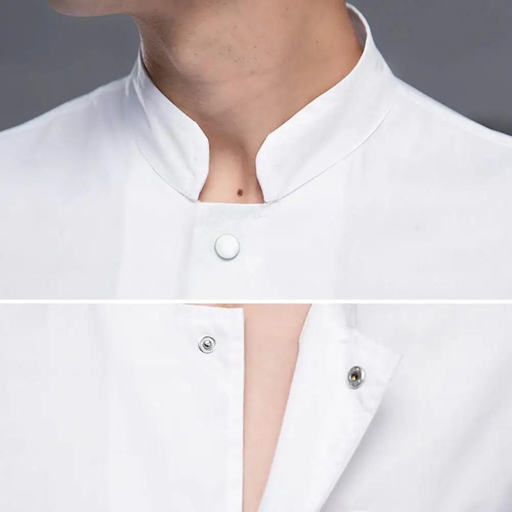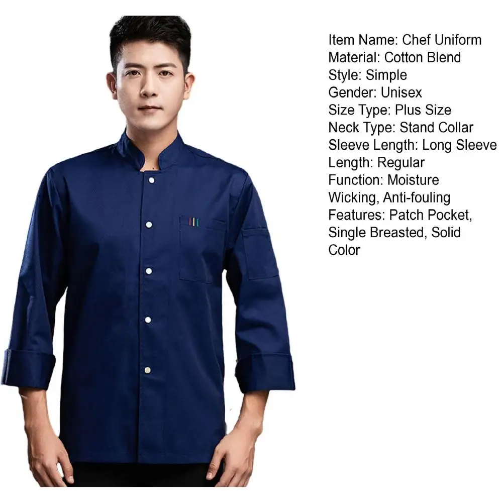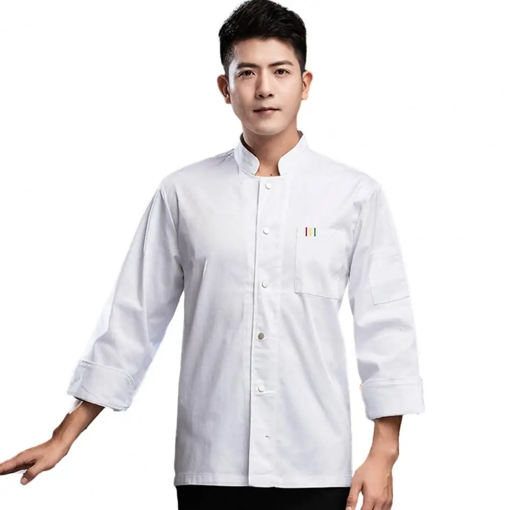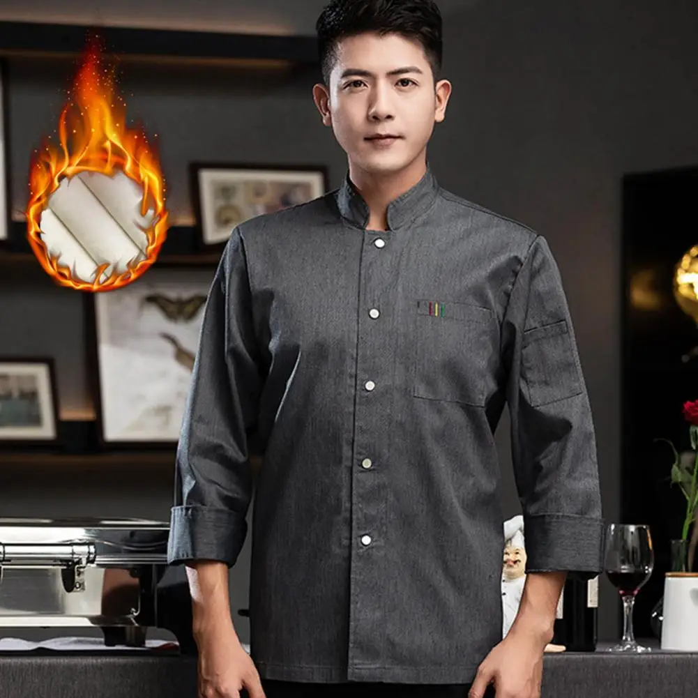 1Pc Autumn Chef Uniform Stand Collar Patch Pocket Chef Uniform Single Breasted Unisex Kitchen French Western Bakery Work Clothes