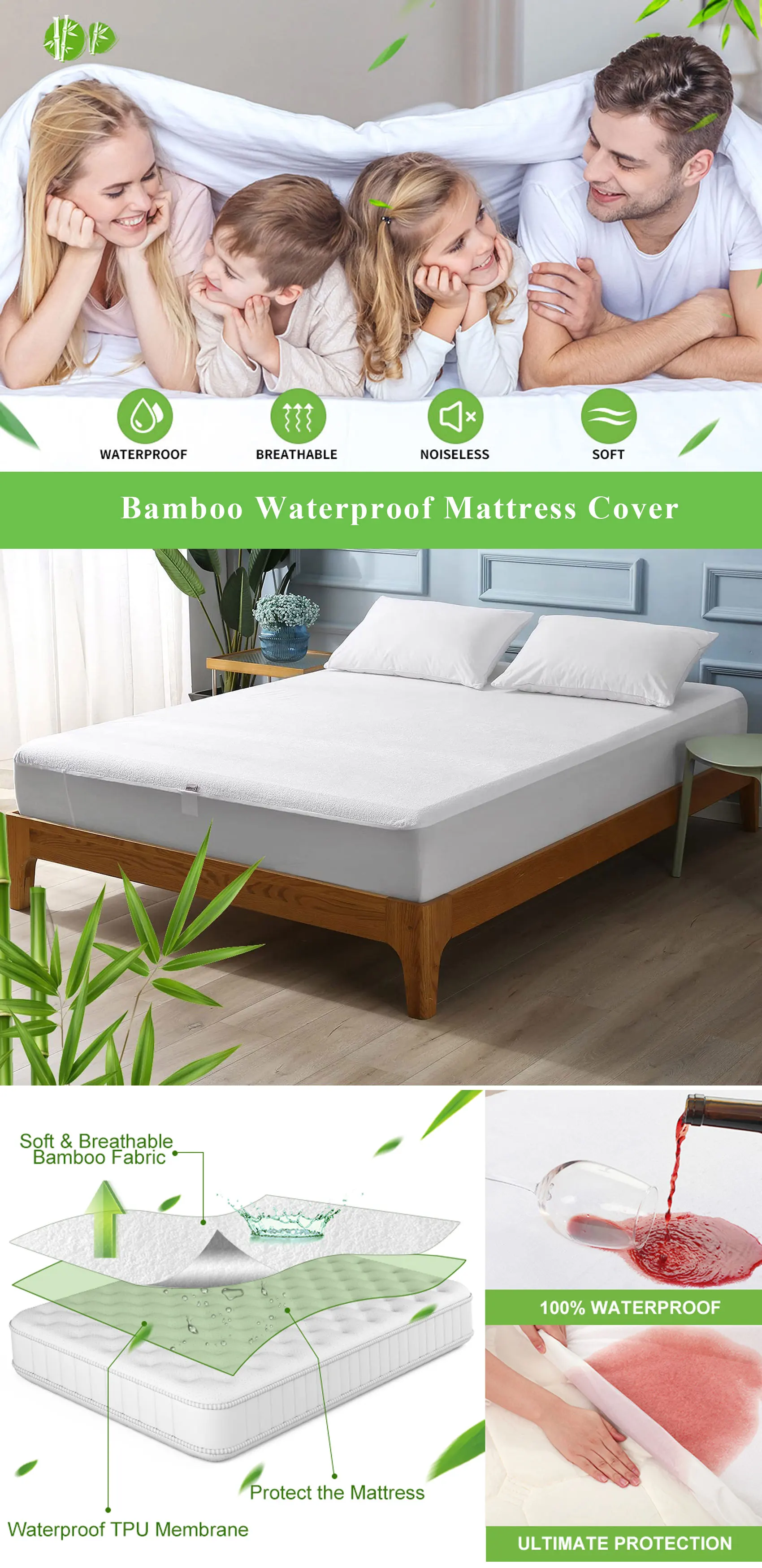 1pc Bamboo Terry Waterproof Mattress Protector Fitted Sheet Mattress Pad Cover Washable for Home/Bedroom/Hotel