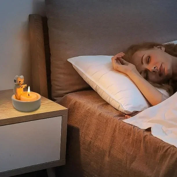 1PC Cartoon Cat Candle Holder Aromatherapy Ornaments Candle Holder Cute Mini Desktop Decorations For Home Bedroom Living Room