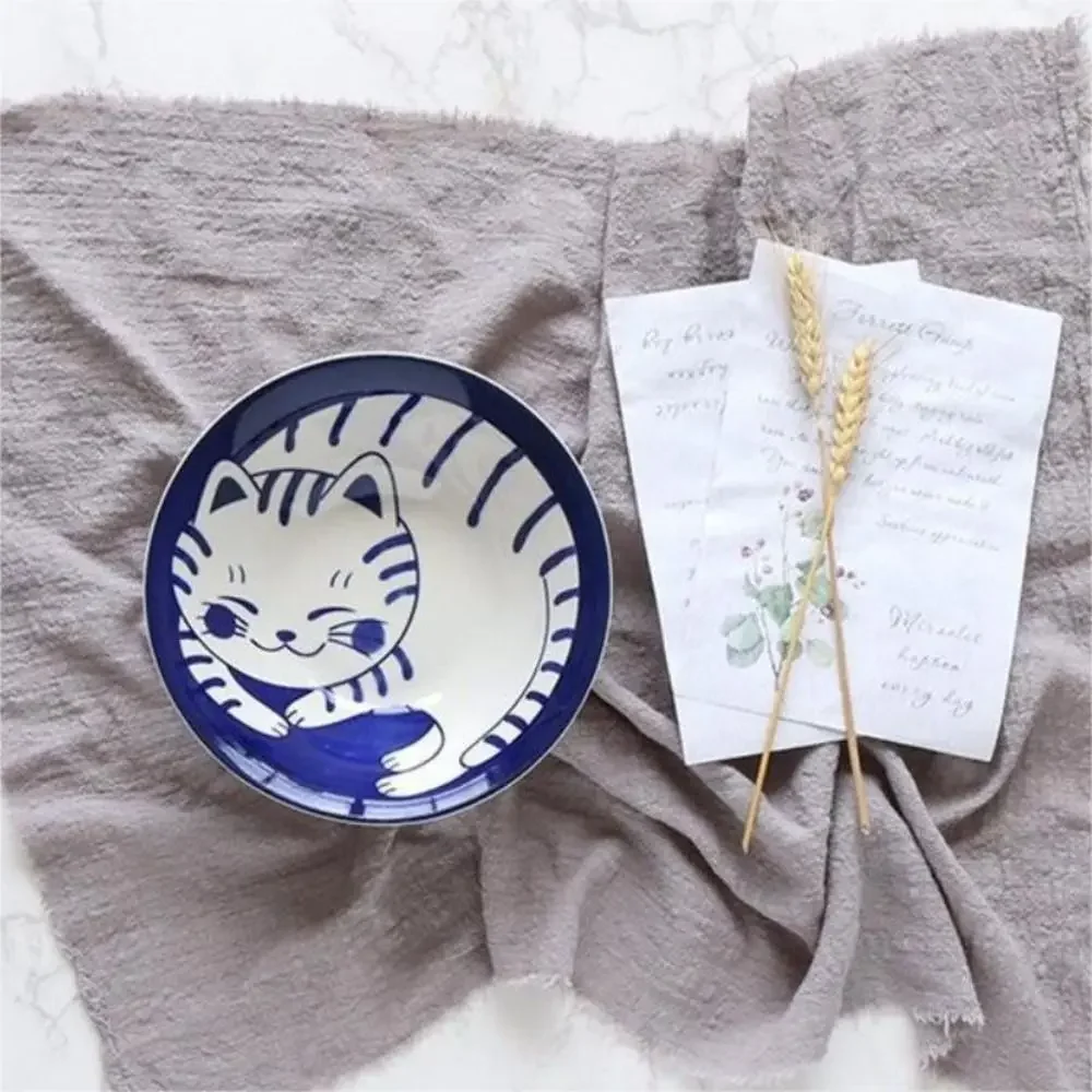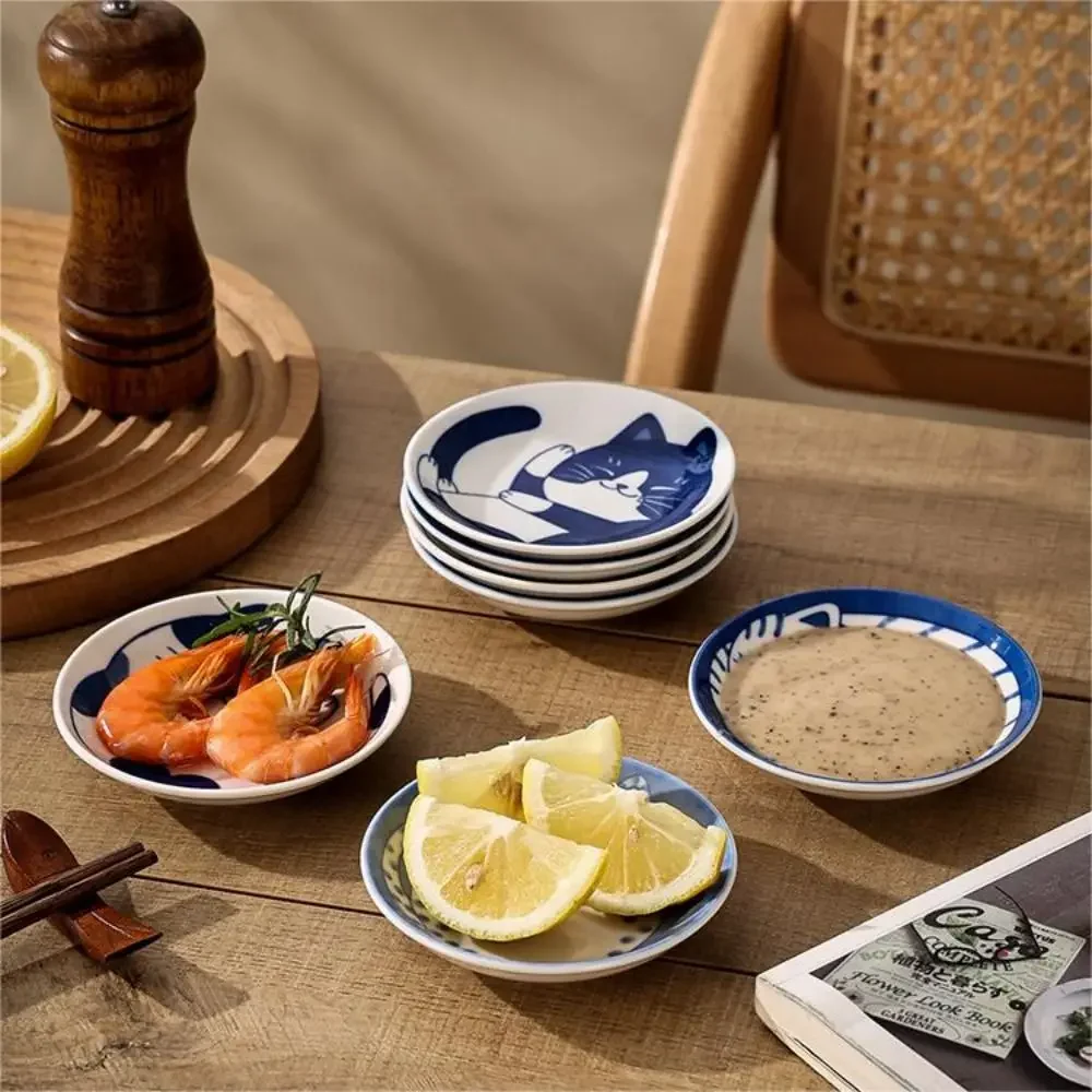 1pc Ceramic Sauce Dishes Sushi Plate Tableware Japanese Style Dessert Creative Cute Cartoon Lucky Cat Pattern Spice Plate