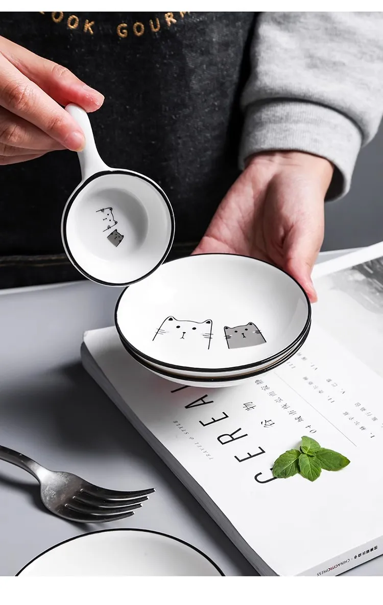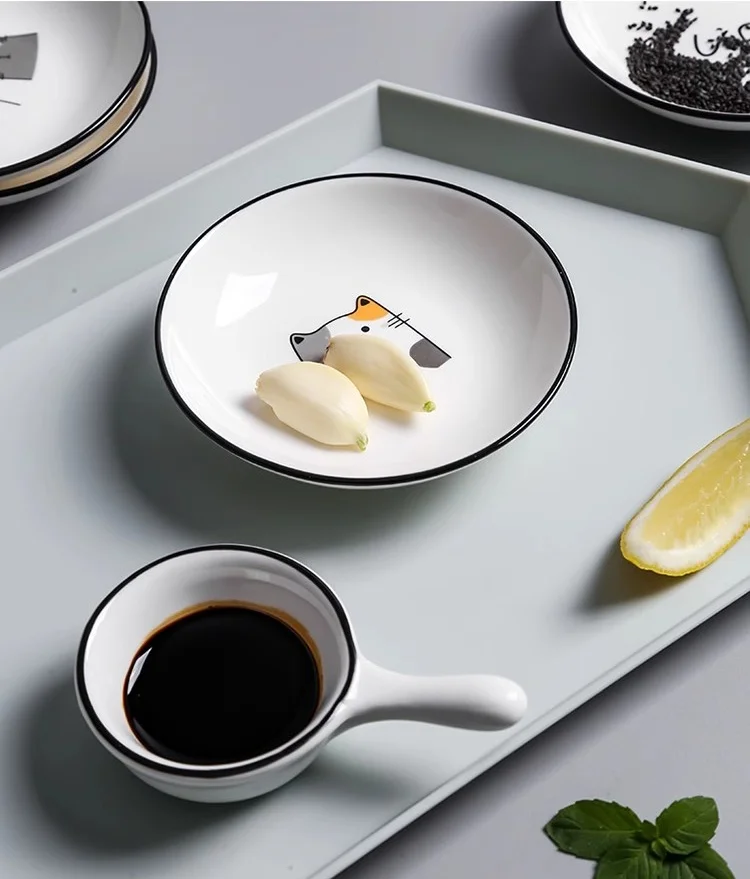 1pc Cute Cat Ceramic Seasoning Dish Creative Kitchen Small Sauce Bowl Household Dipping Plate Creative Vinegar Soy Snack Dishes