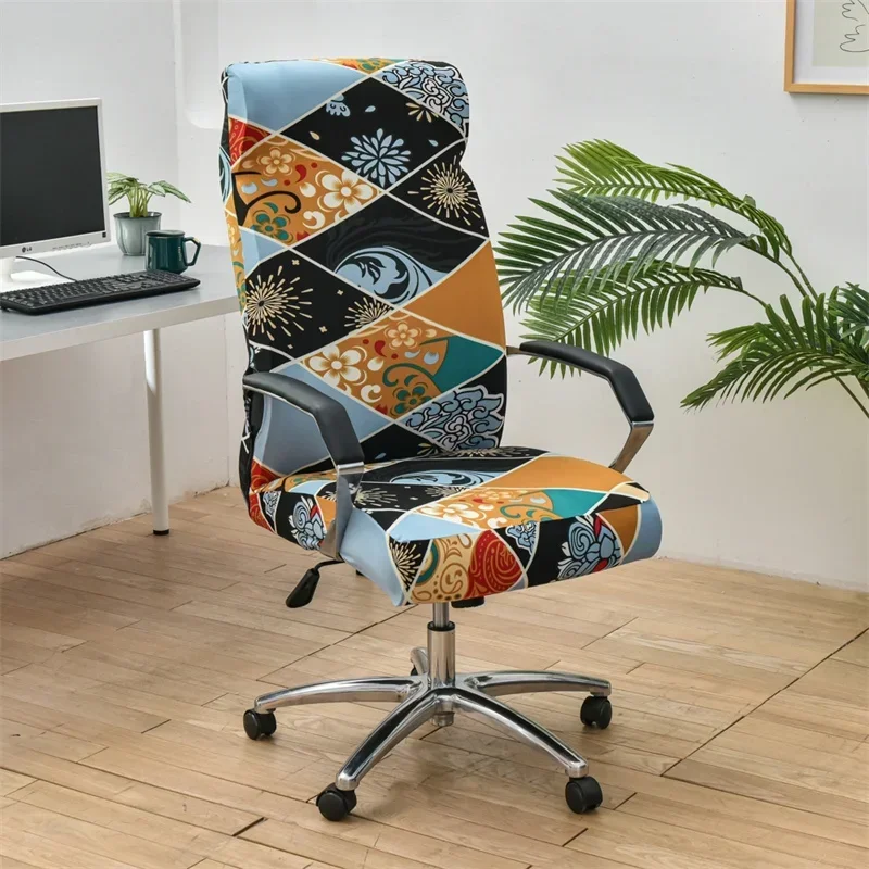 1pc Elastic Office Chair Cover Geometry Stretch Gaming Seat Slipcover Washable Non Slip Office Rotating Computer Chair Covers