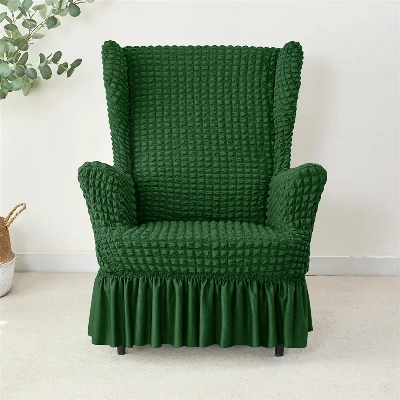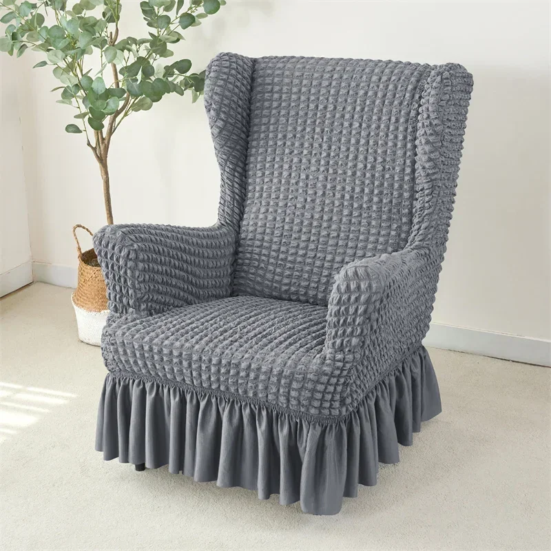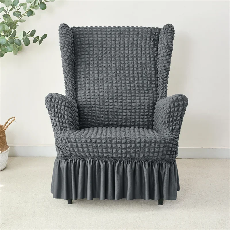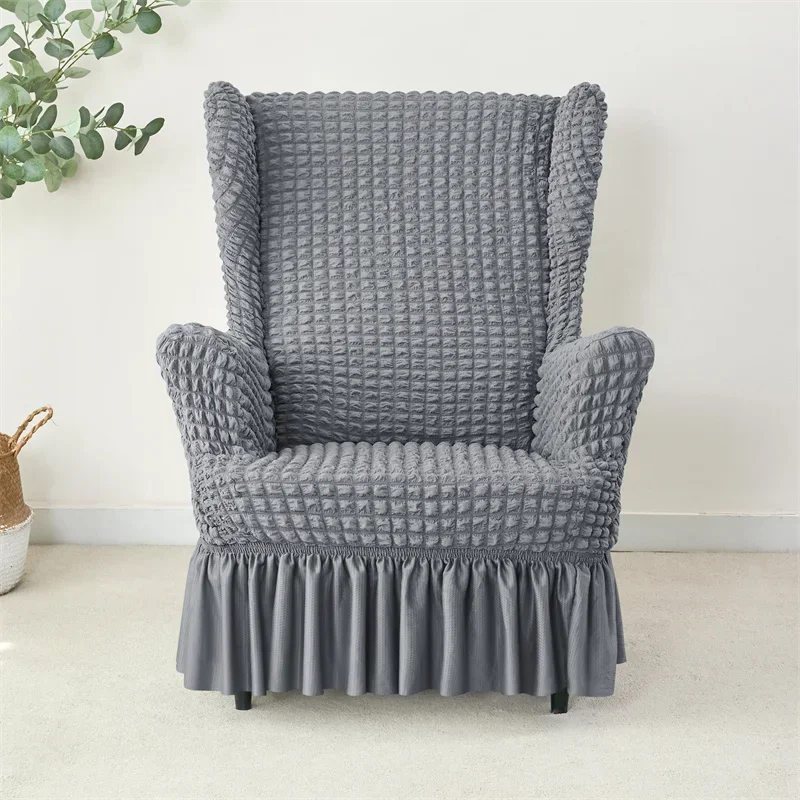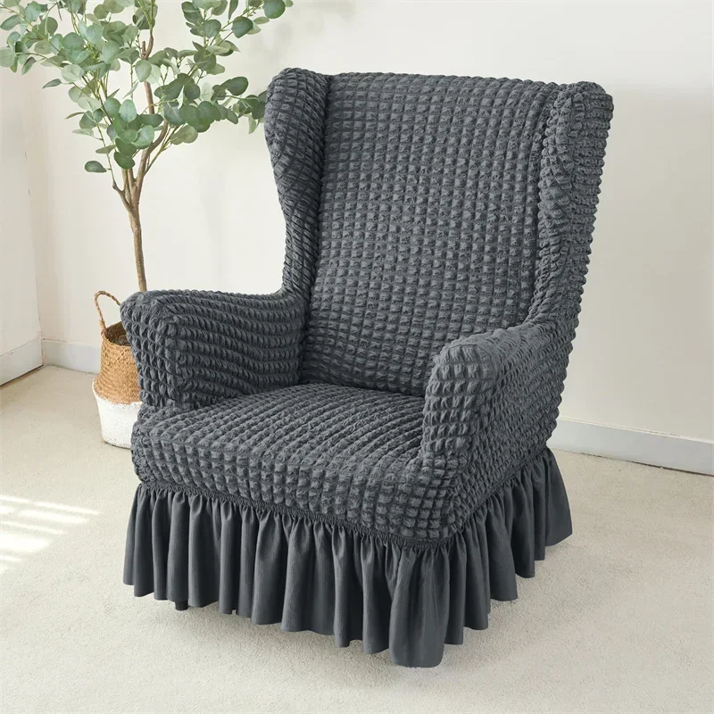 1PC Elastic Plaid Seersucker Wingback Chair Covers Soild Color Stretch Wing Chair Slipcovers Armchair Protector Dust Cover