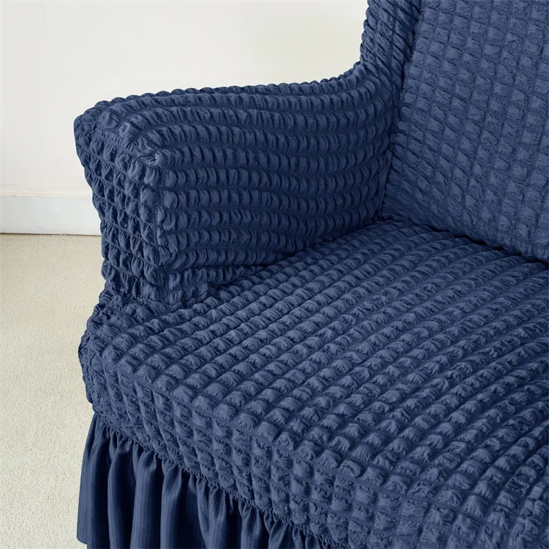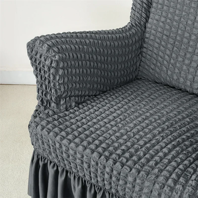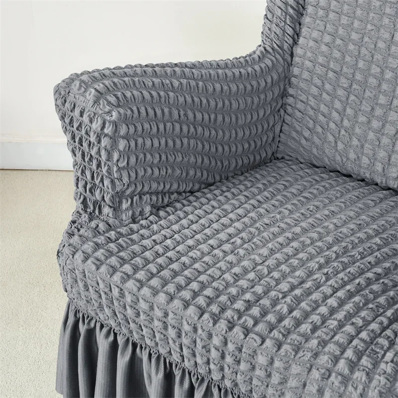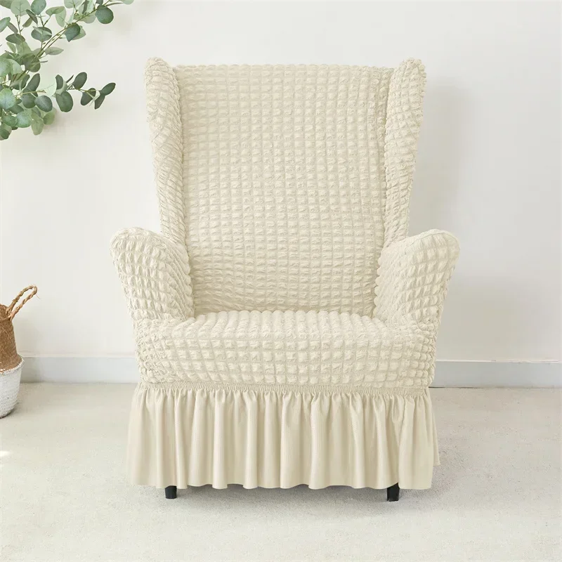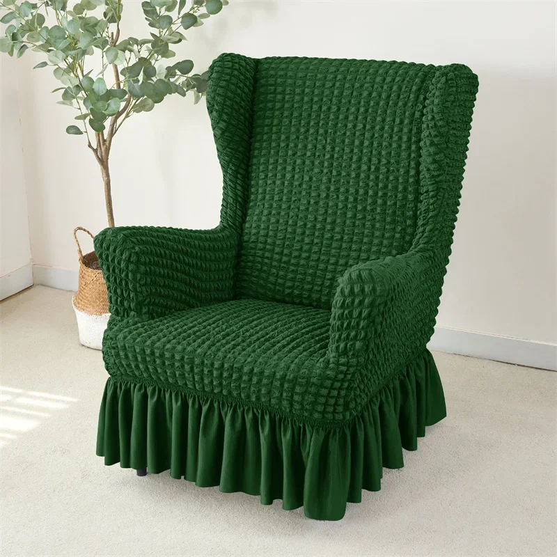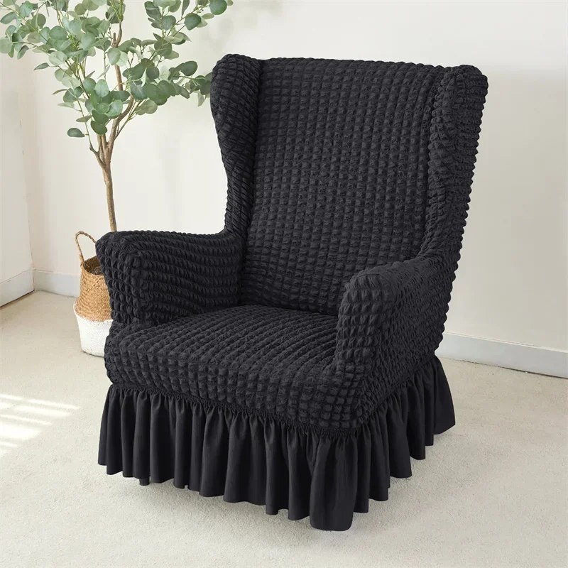 1PC Elastic Plaid Seersucker Wingback Chair Covers Soild Color Stretch Wing Chair Slipcovers Armchair Protector Dust Cover