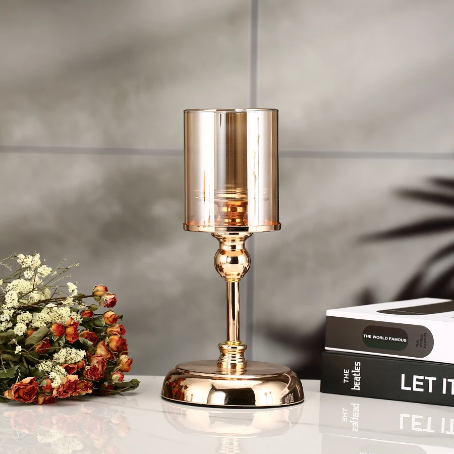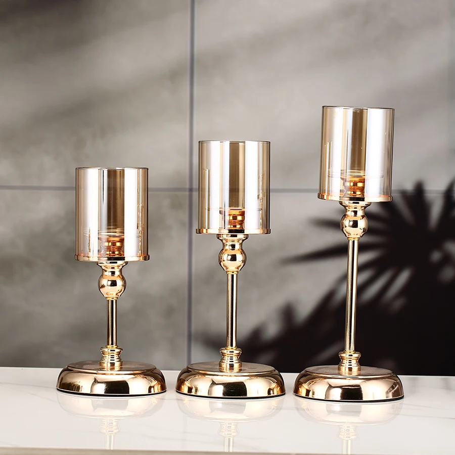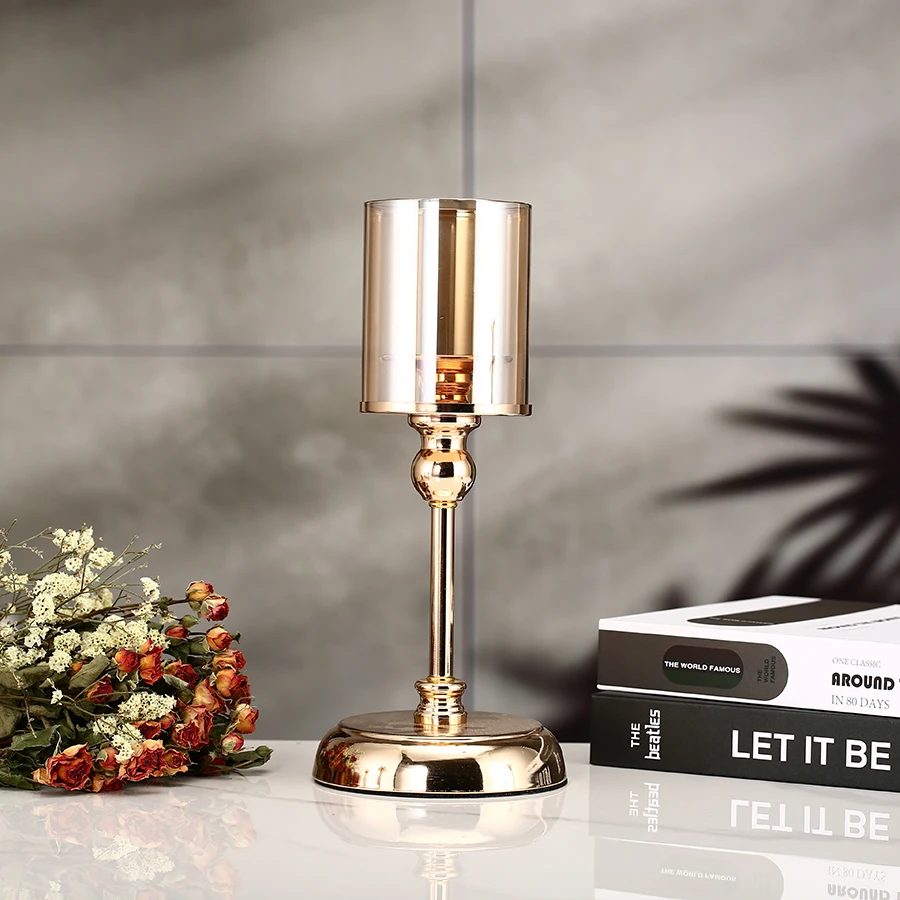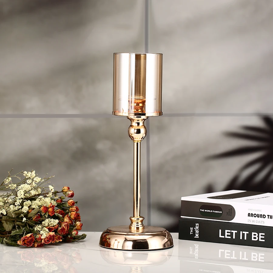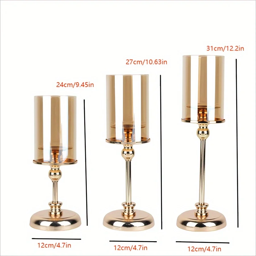 1pc Golden Glass Candle Holders for Pillar Candle Candlestick for Dining Coffee Table Wedding Events Parties Home Decor