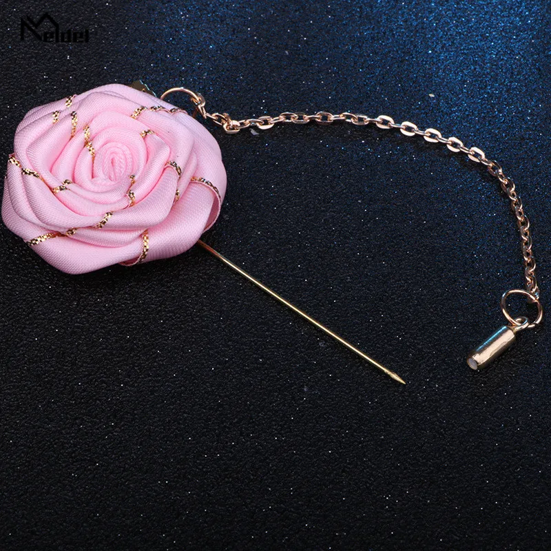 1pc Groomsmen Lapel Pins Wedding Corsage Boutonniere Pin for Men Women Silk Buttonhole for Party Prom Suit Accessories Brooches