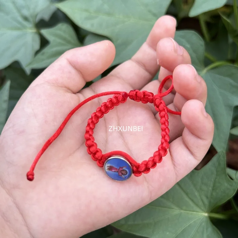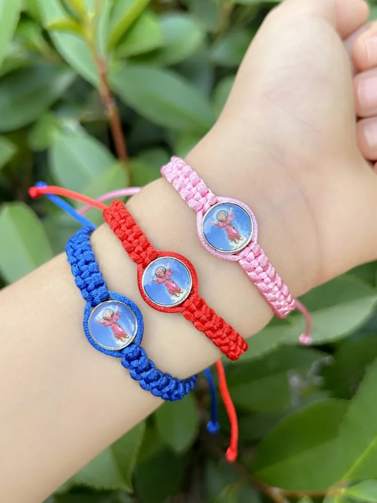 1pc Handmade Rope String Baby Jesus Bracelets Blue Pink Red Thread Divino Nino Child Pulsera Catholic Gift for Kids Baby Baptism
