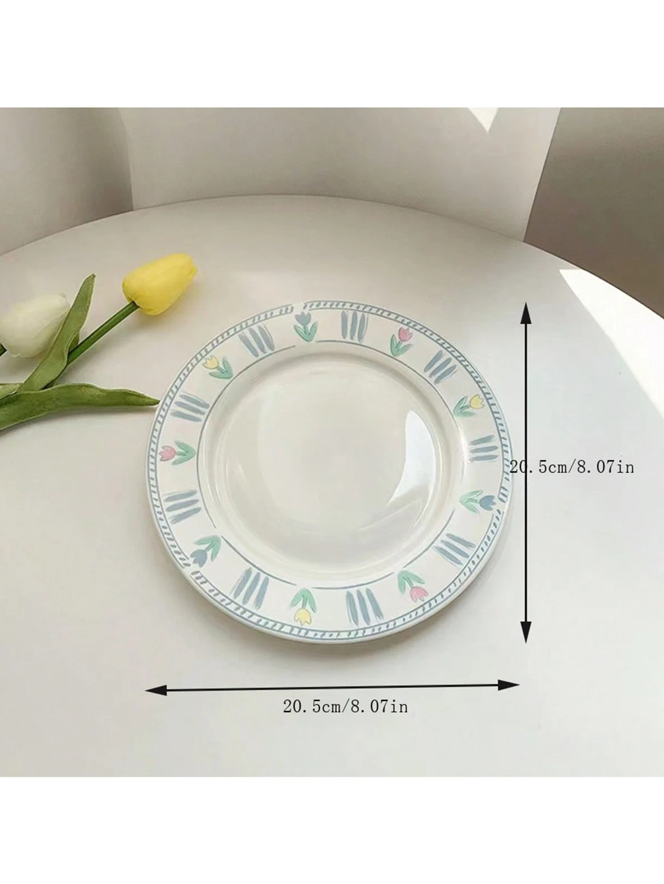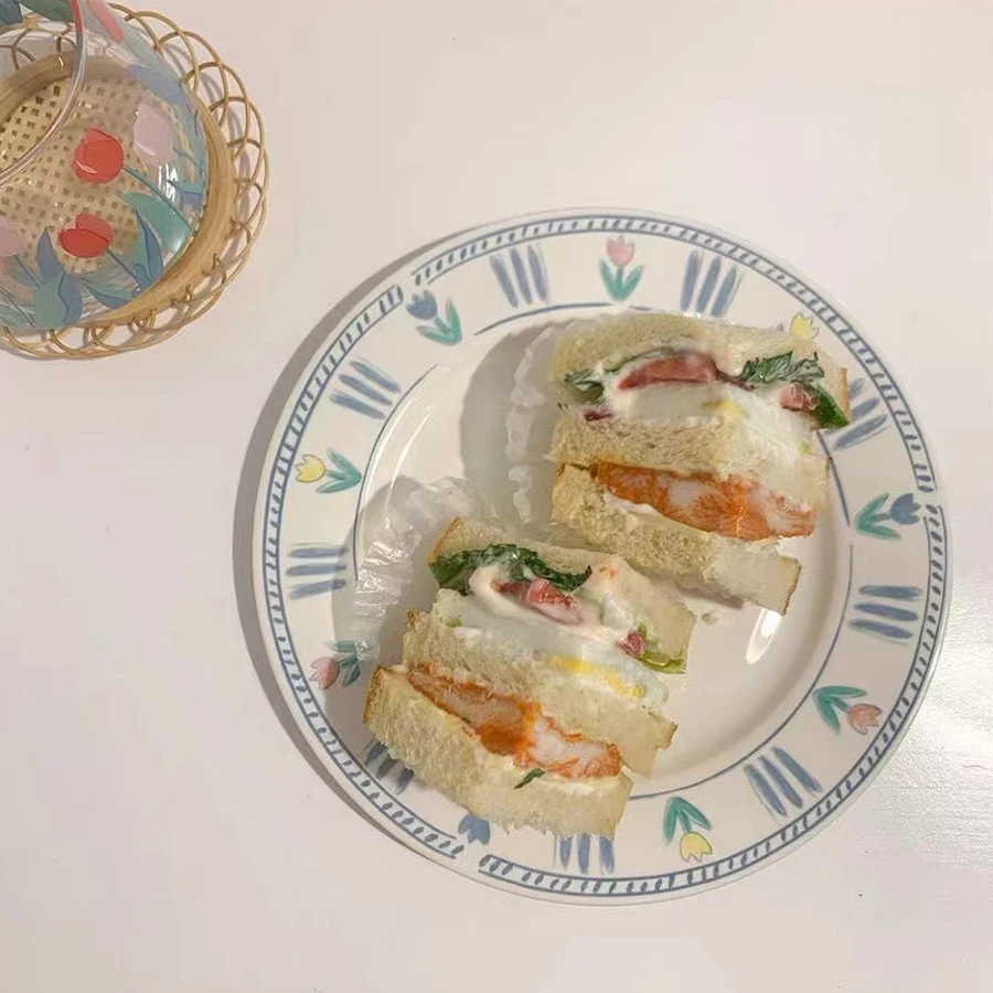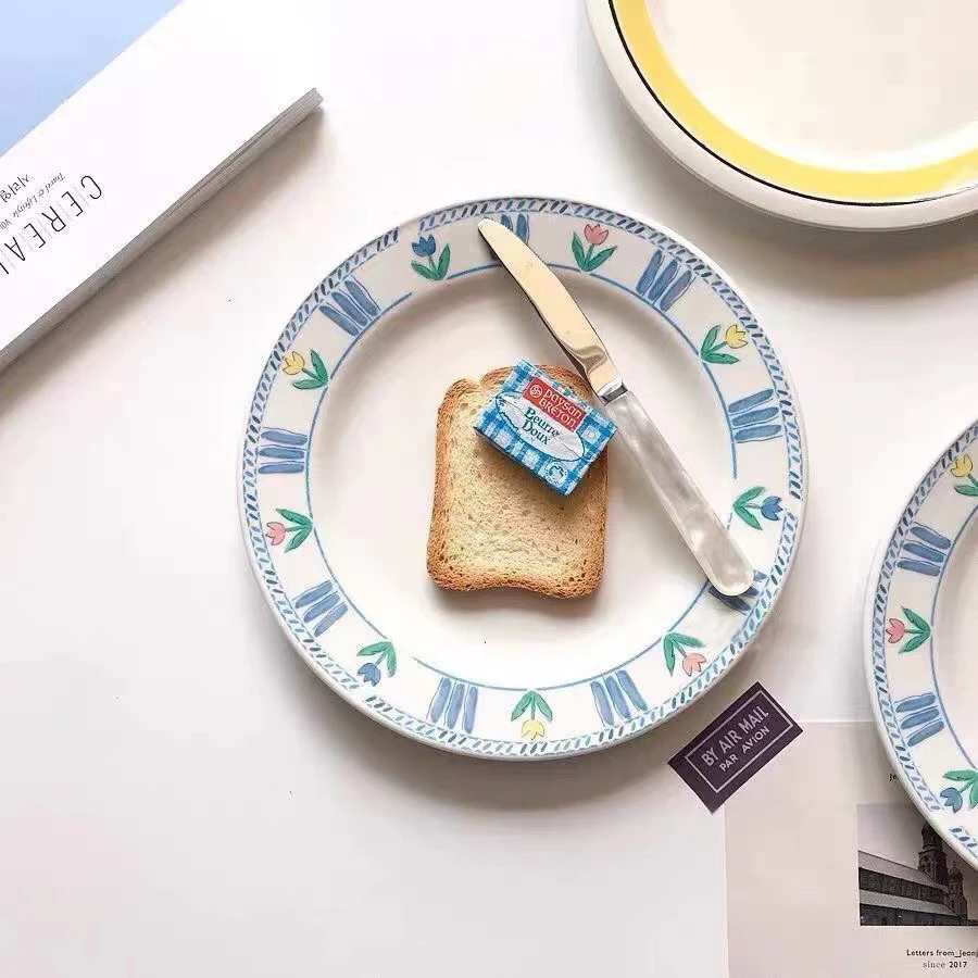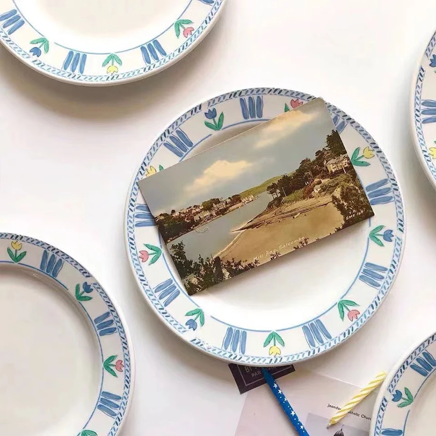 1pc Korean minimalist niche blue tulip bone China dinner plate French retro home ceramic flower breakfast main dish