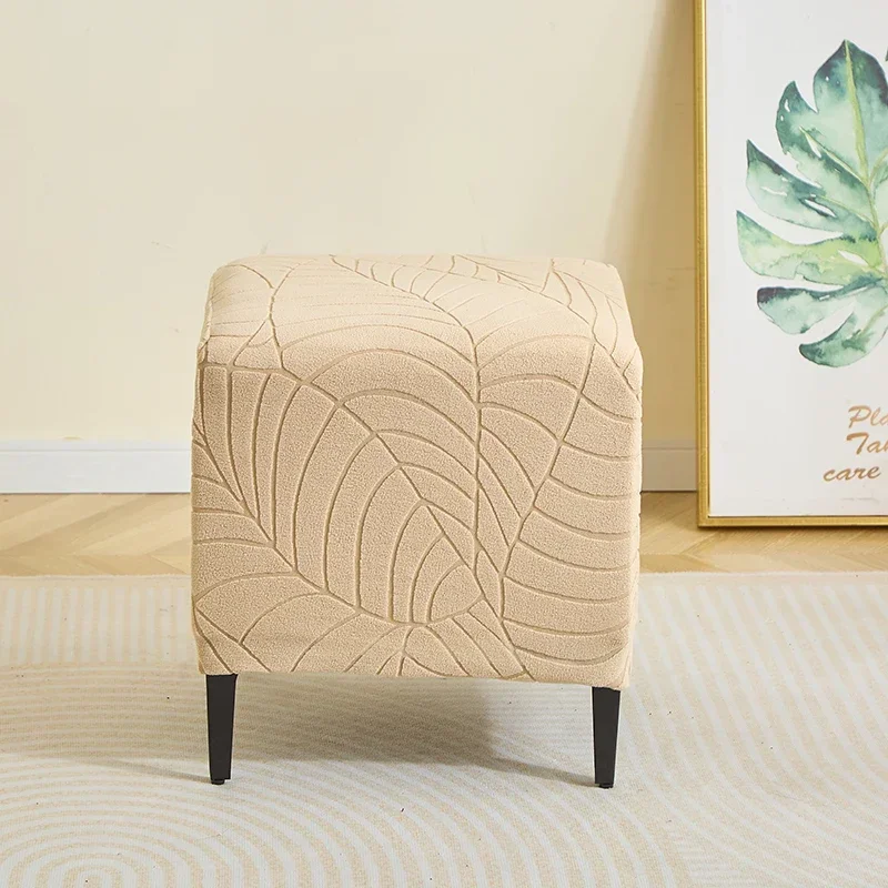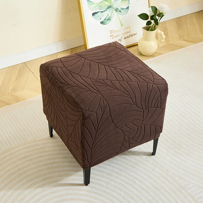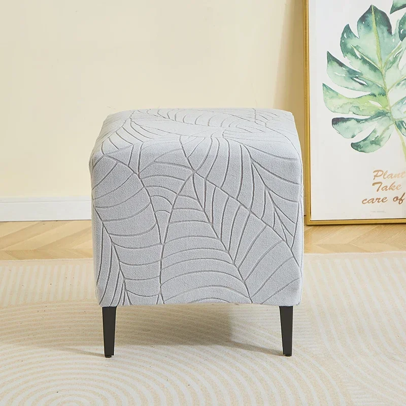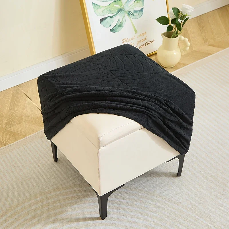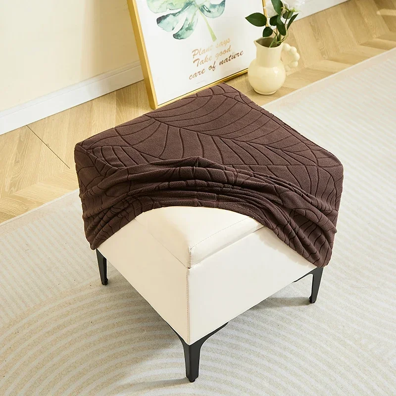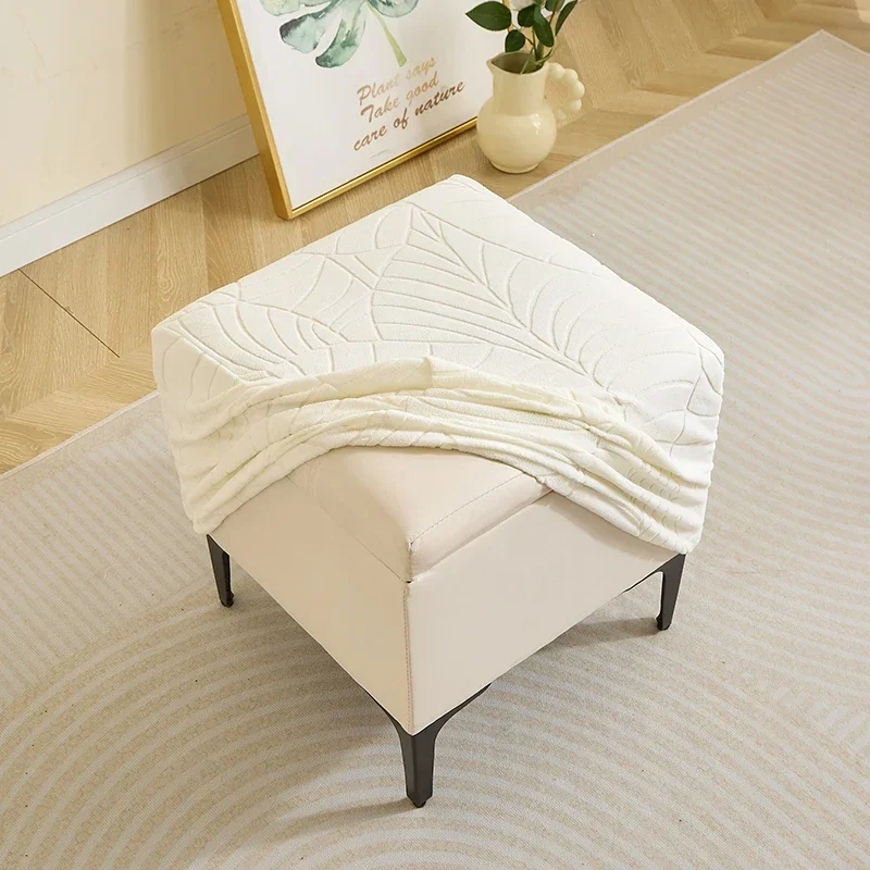 1PC Leaf Jacquard Ottoman Cover Elastic Square Footrest Cover Solid Color Dustproof Footstool Slipcover for Bedroom Party Hotel