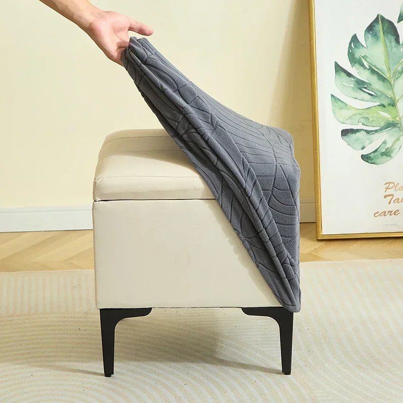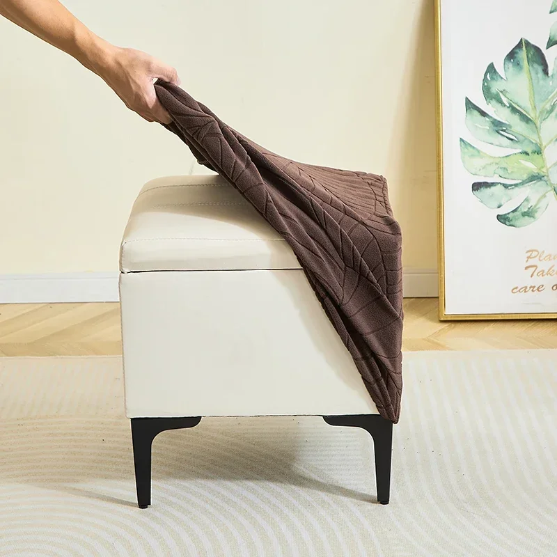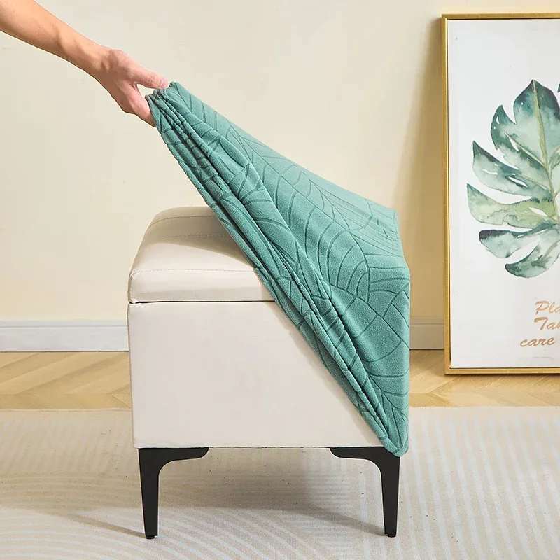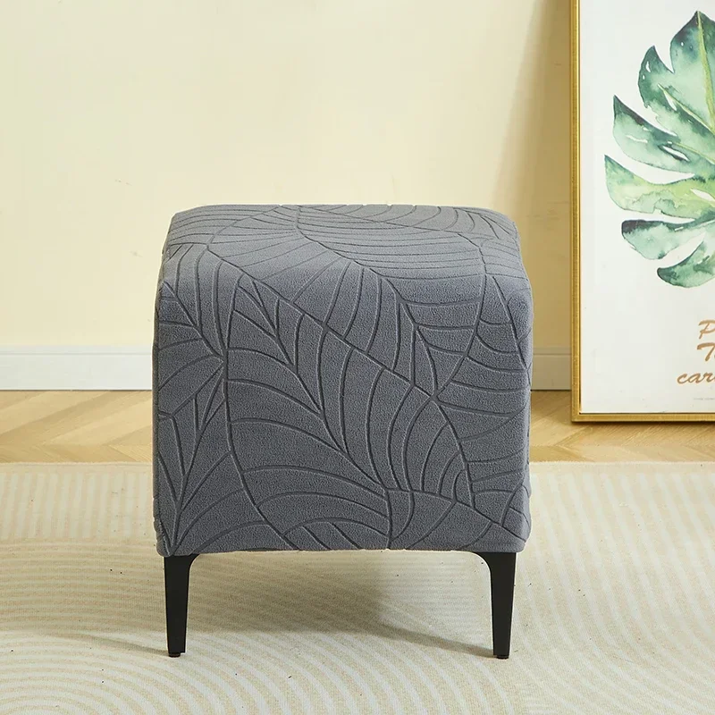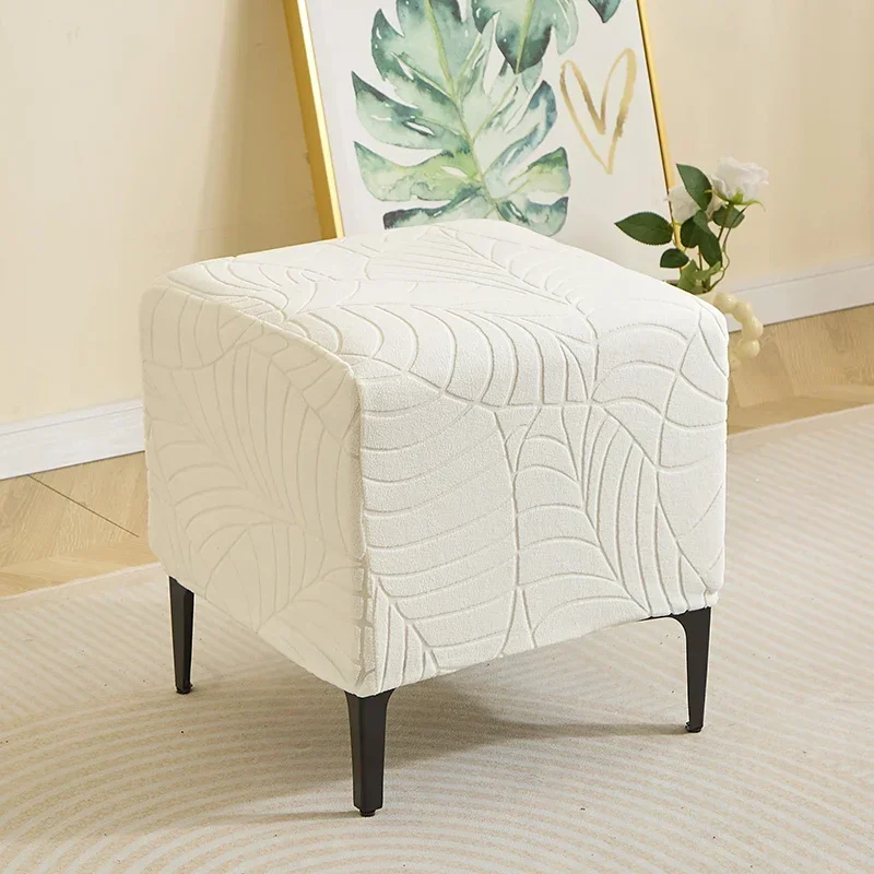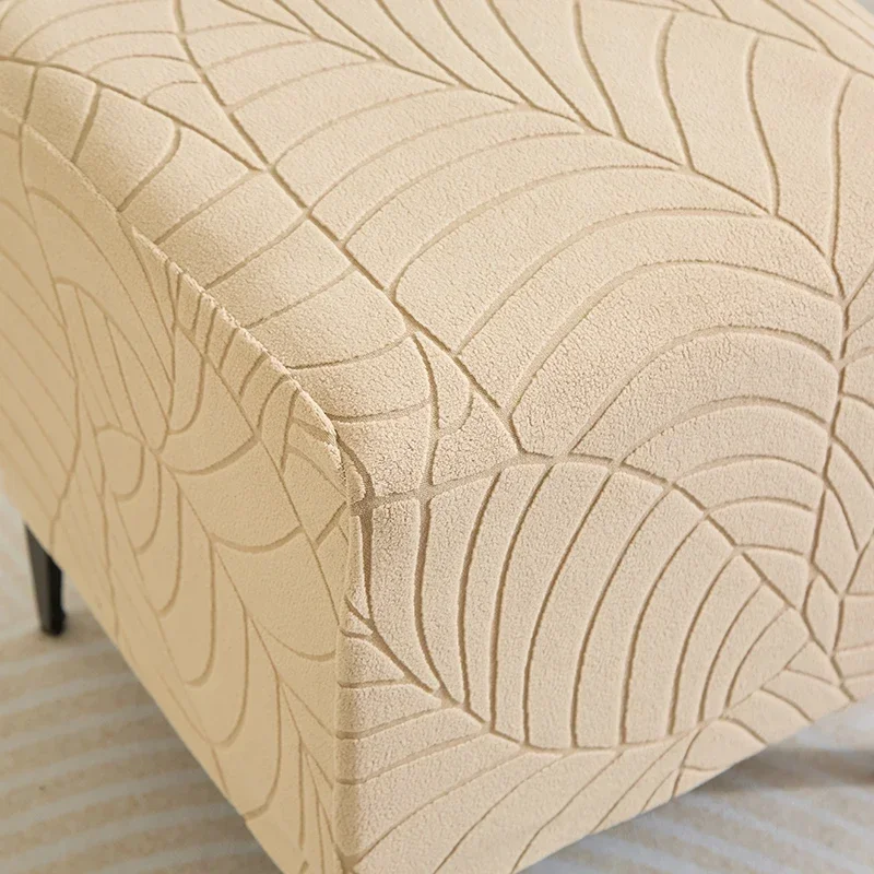 1PC Leaf Jacquard Ottoman Cover Elastic Square Footrest Cover Solid Color Dustproof Footstool Slipcover for Bedroom Party Hotel