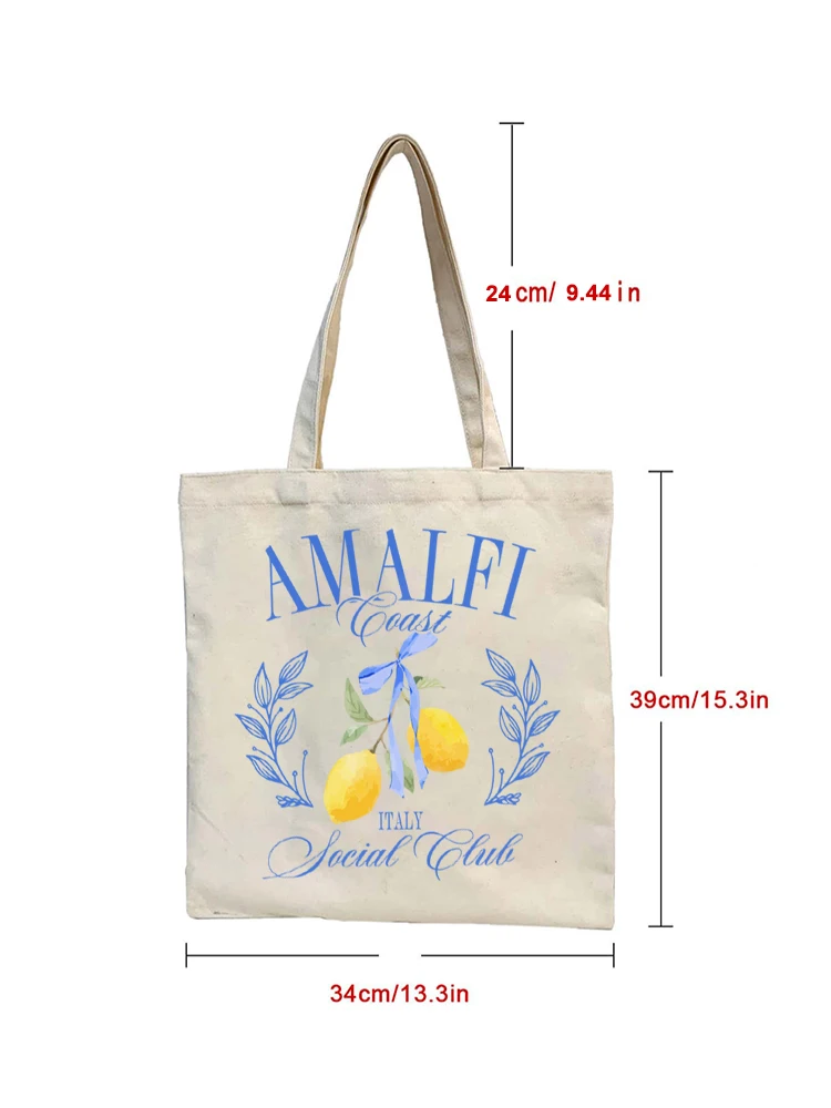 1pc Lemons Pattern Tote Bag Casual Canvas Shoulder Bag Portable Handbag for School Travel Shopping Bags for Women