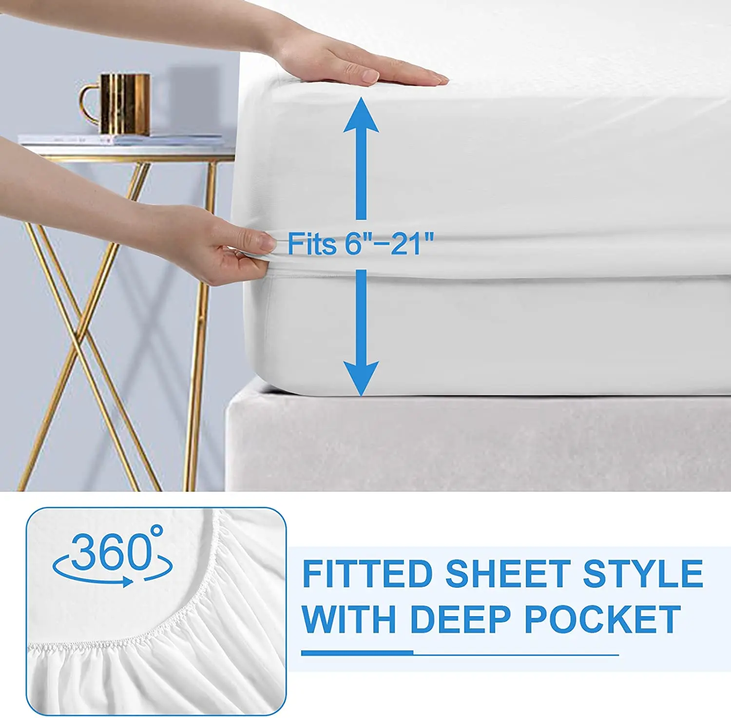 Fitted Sheet Style Design: Tight-fitting elastic strip can ensures the cover stays in place, perfectly fit your mattress