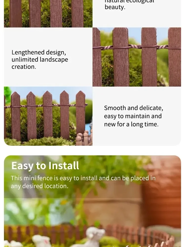 1pc Mini Fence, Garden And Bonsai Decoration Fairy Tale Garden Fence Wooden Decoration, DIY HandicraftProject Mini Picket Fence