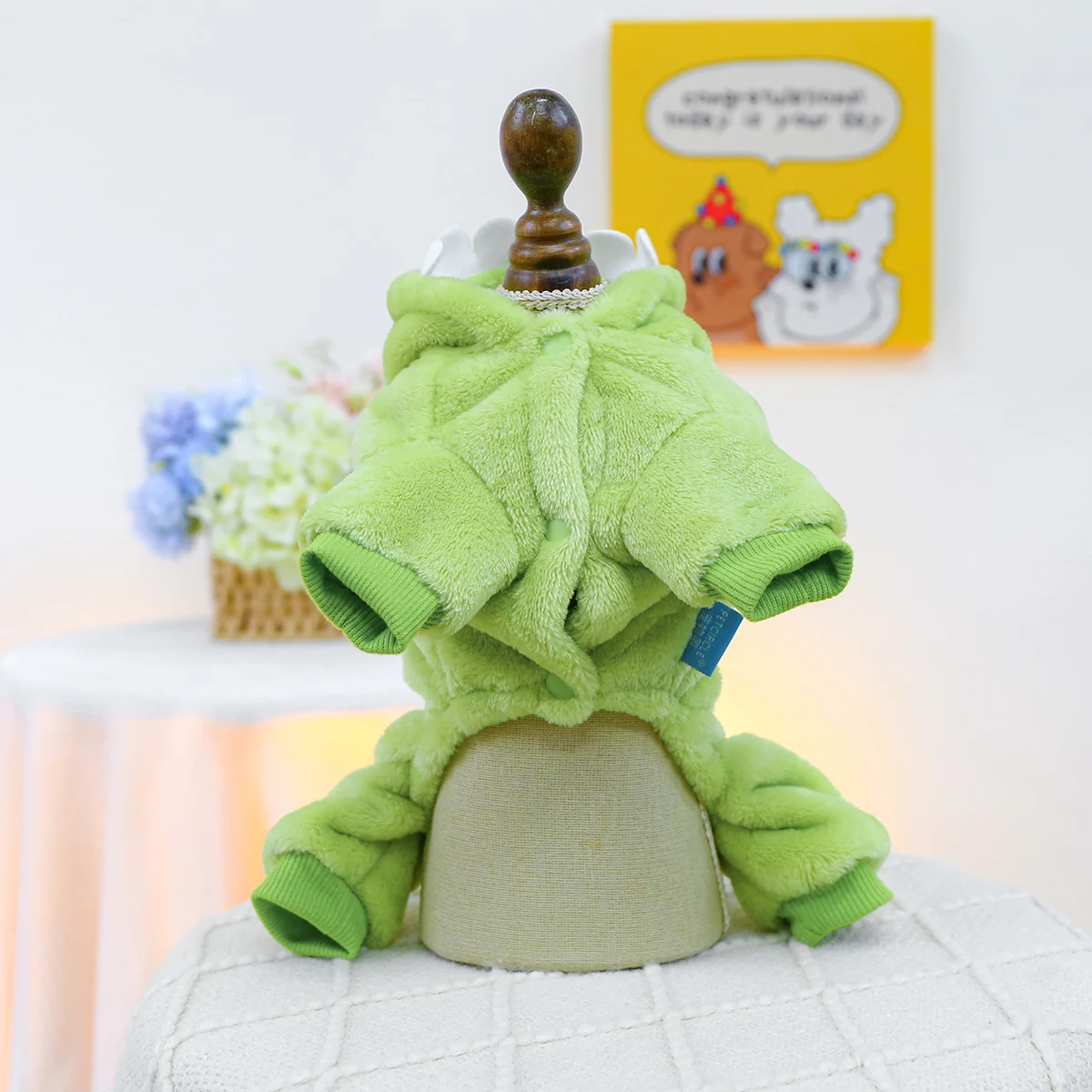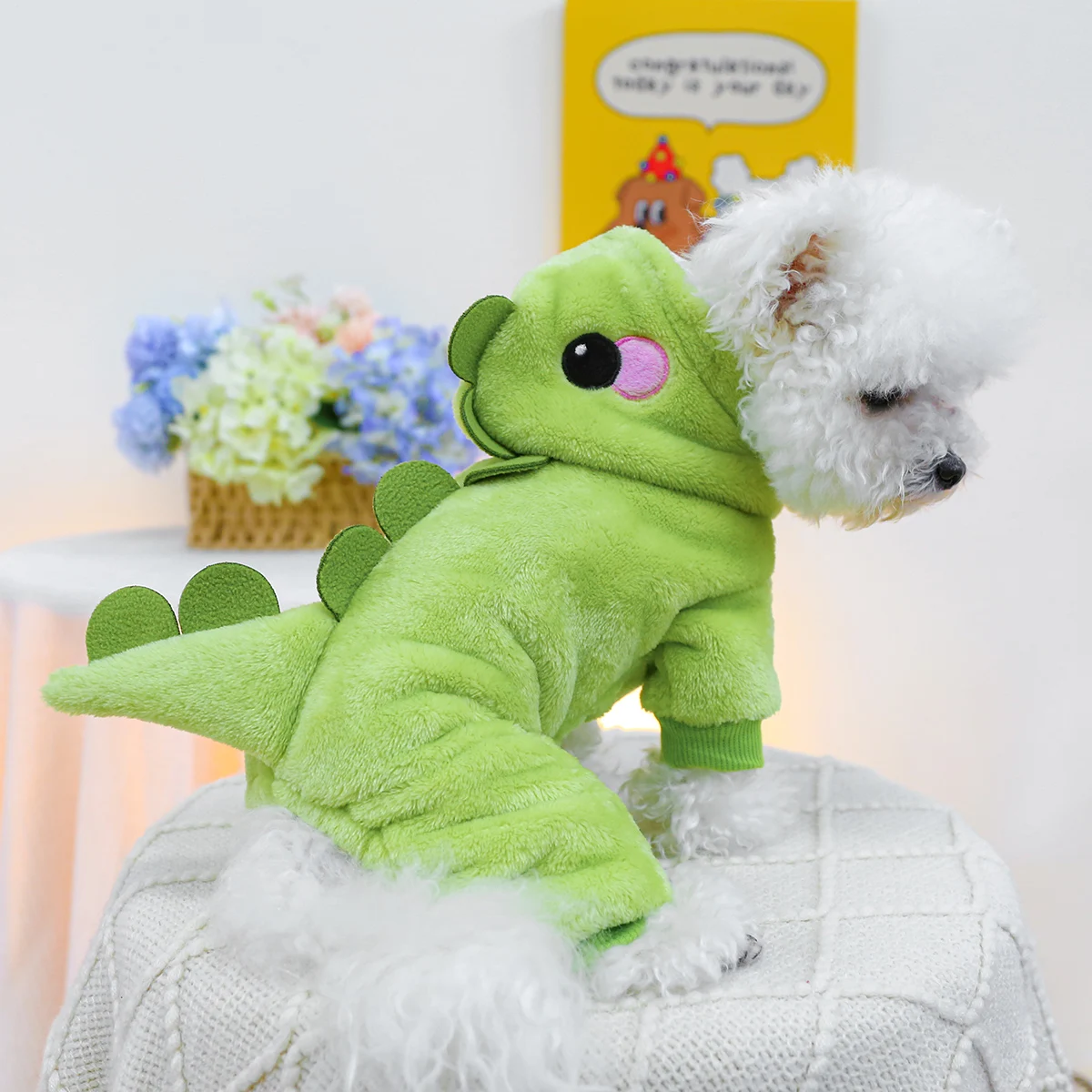 1PC Pet Clothing Autumn and Winter Thick Velvet Green Bean Dragon Transforms into Four Legged Suitable for Small and Medium Dogs