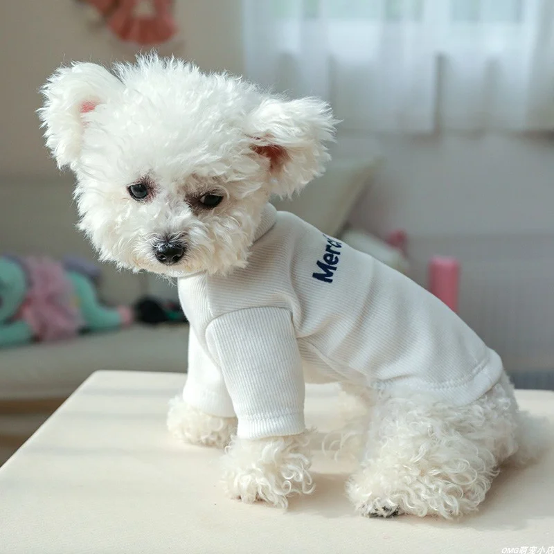 1PC Pet Clothing Spring and Autumn Pullover Elastic White Letter Base Shirt Suitable for Small and Medium sized Dogs