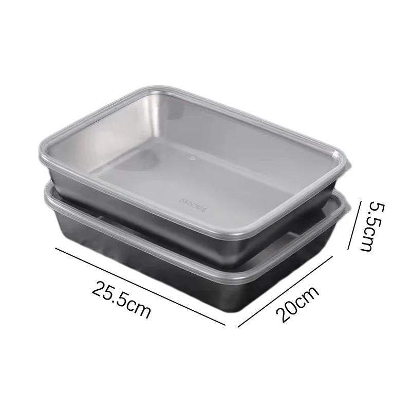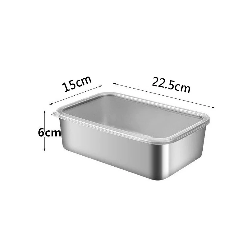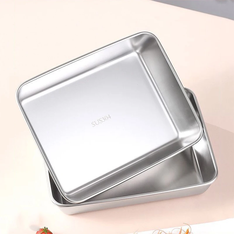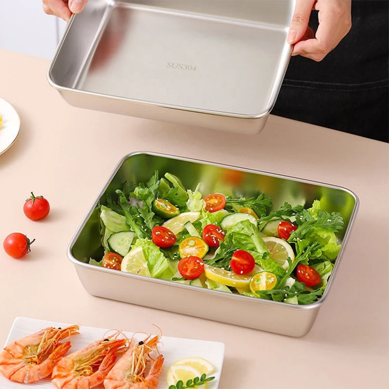 1Pc Stainless Steel Square Plate Preservation Box with Lid Kitchen Steam Fish BBQ Grill Pan Cold Dish Fruit Plate Serving Tray