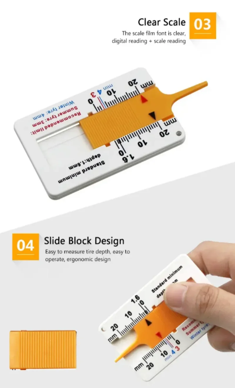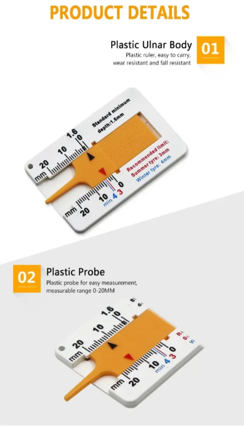 • Accurate Depth Measurement :The tyre tread depth gauge measures the depth of the tread on your tyres accurately, ensuring that you know exactly how much tread you have left.