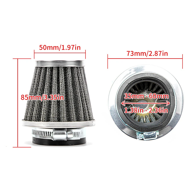 1pc Universal 35-60mm Motorcycle Tapered Air Filter Cleaner Dirt Pit High Air Flow Filter Conical Air Filter Dirt Cleaner