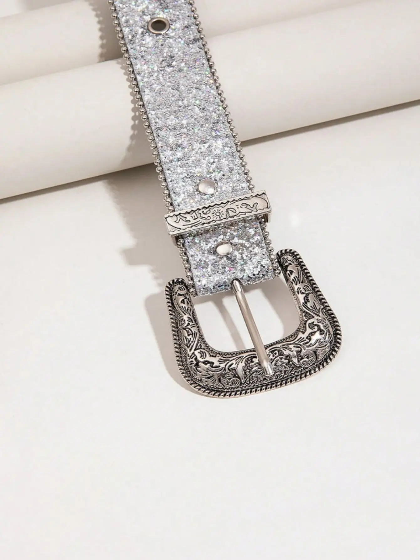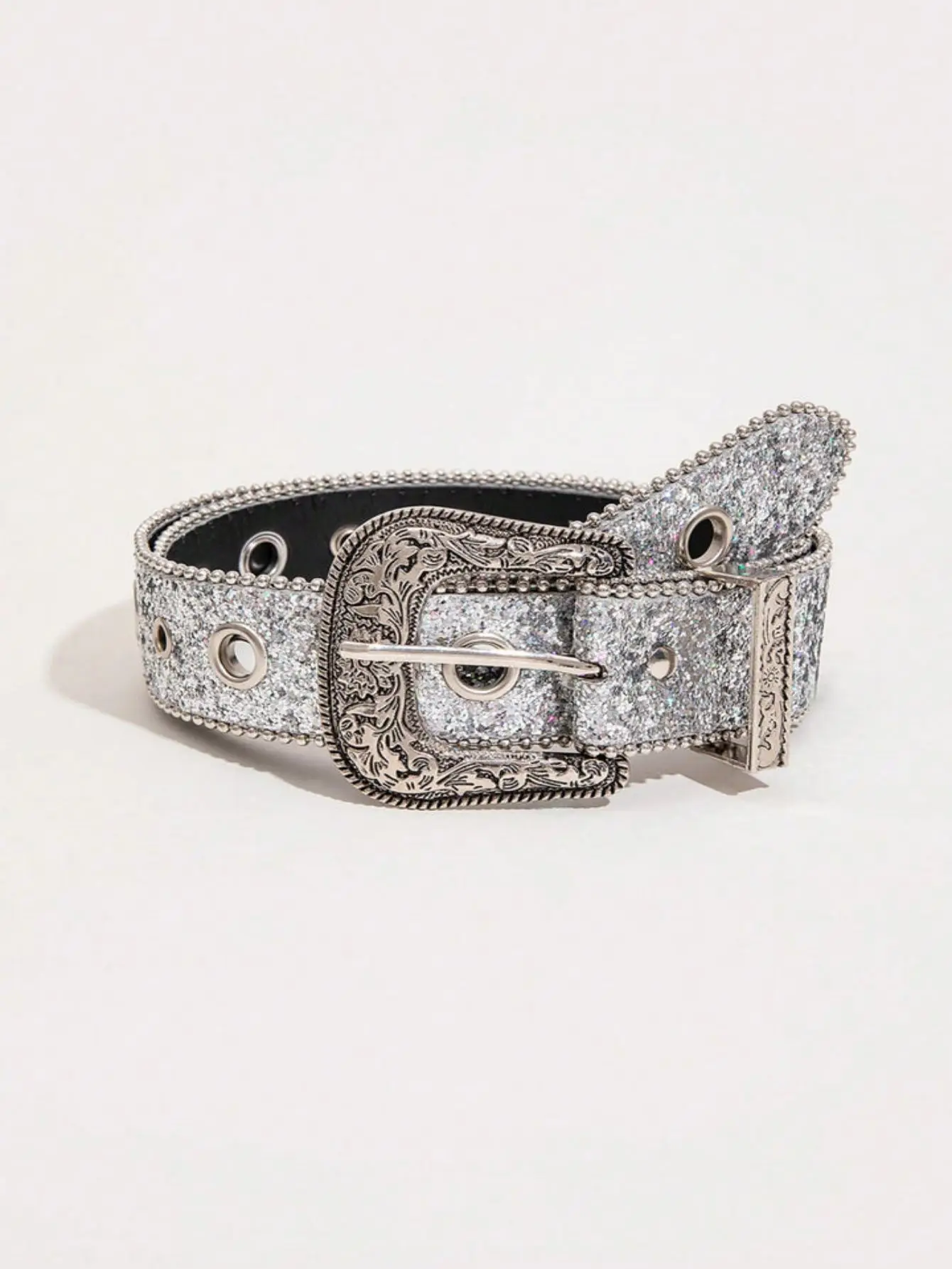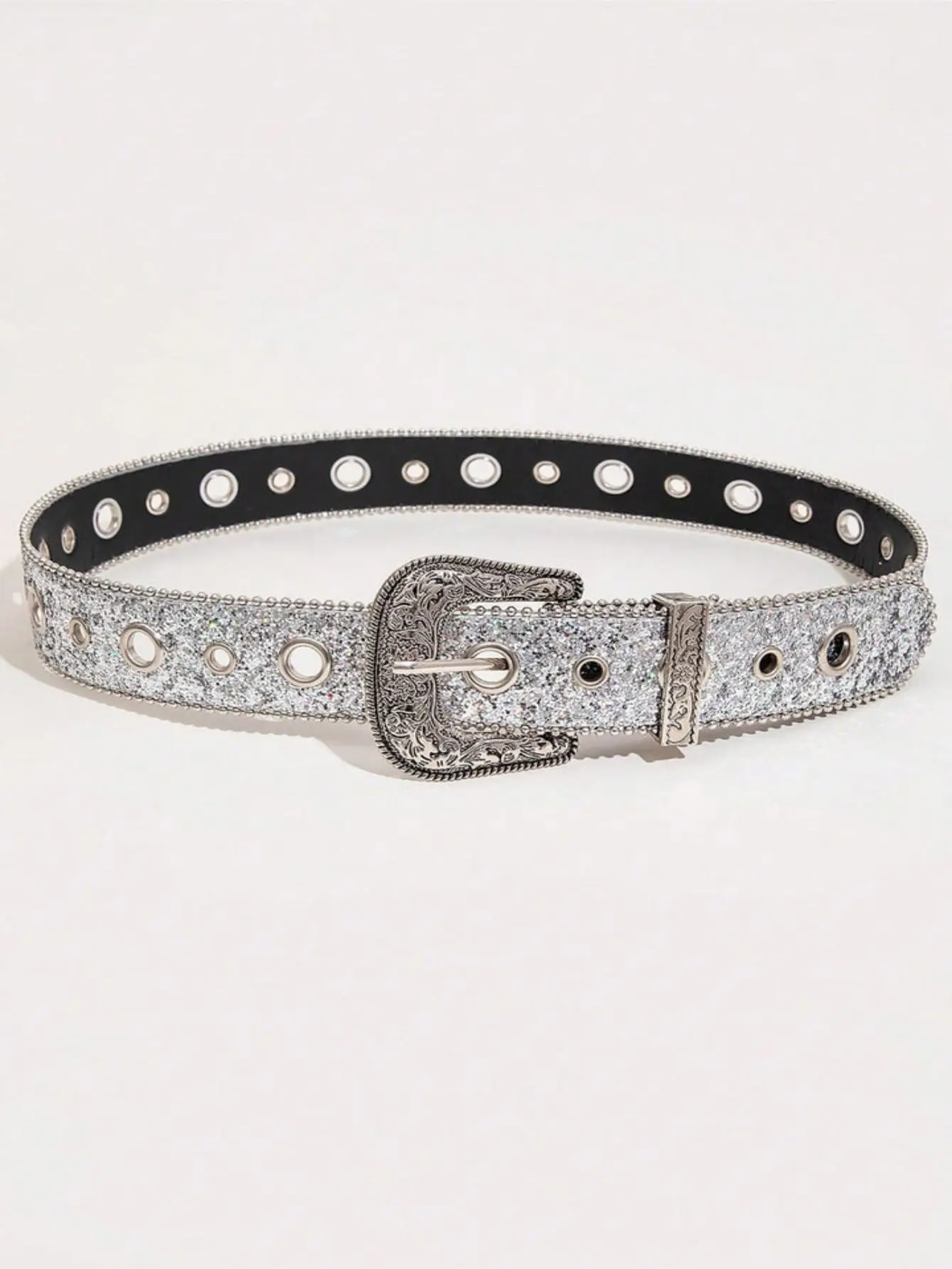 1pc Western Men’s Silver Punk Y2K Sparkling Trend With Rivets & Rhinestones Waist Belt, Suitable For Daily Wear