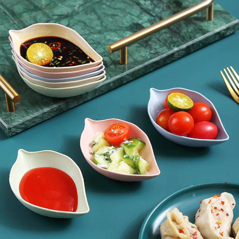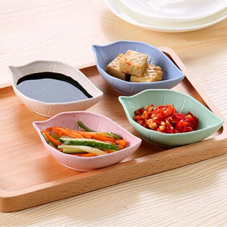 1PC Wheat Straw Dipping Dishes Snacks Dish Food Storage Tray Nut Platter Fruit Dumpling Saucer Appetizer Seasoning Plate Holder