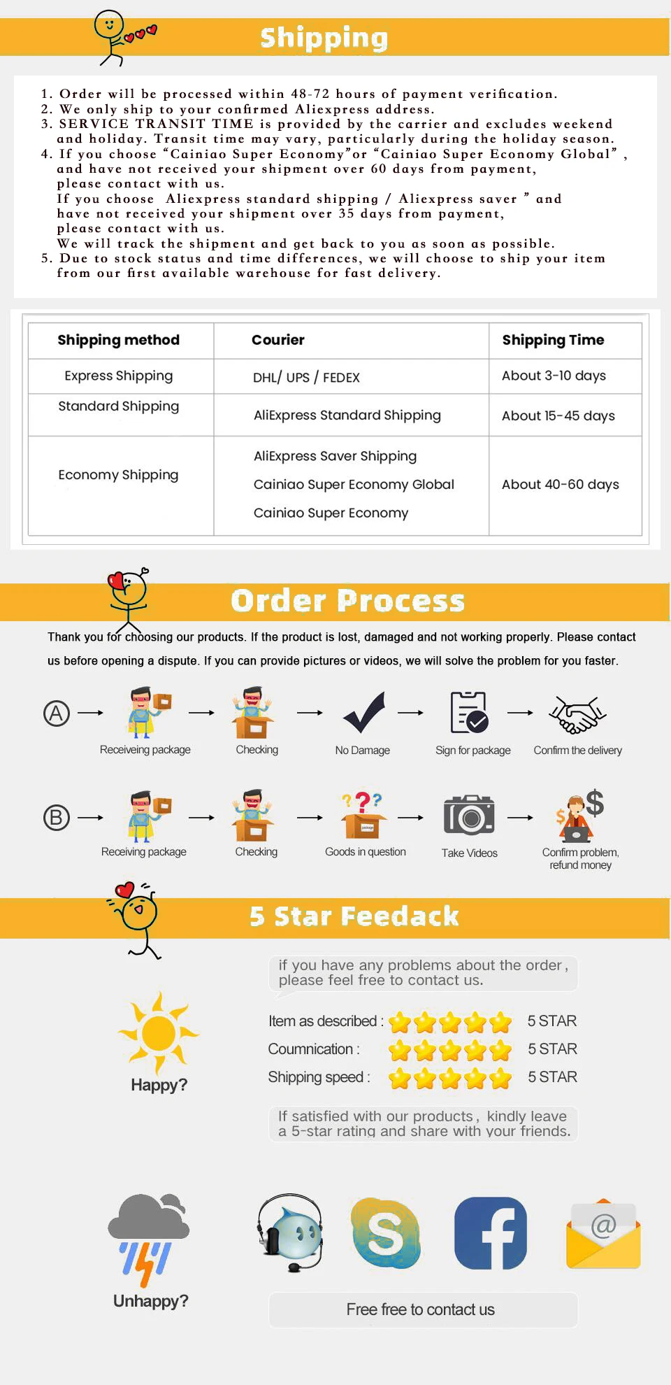 Please contact us first before you leave Neutral or Negative feedback. We will do our best to solve the problem, thanks!
