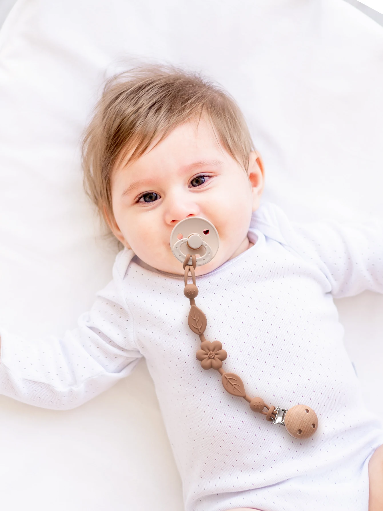 4, Cute Design, Perfect Gift For Baby1pcs Baby Silicone Pacifier Chains, Anti Loss Adjustable Pacifier Holder For Newborn Teether Chew Toys, Brown