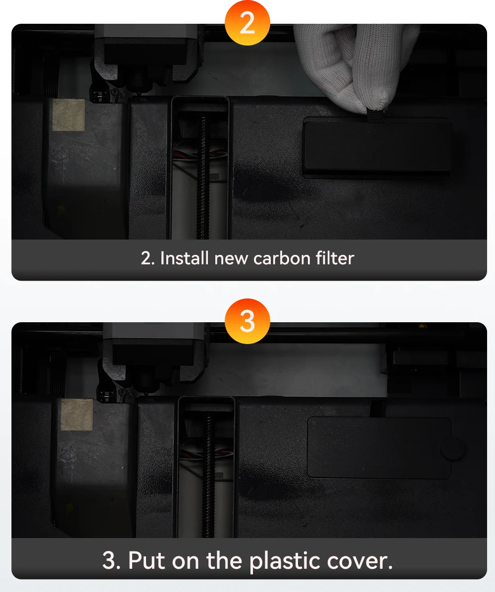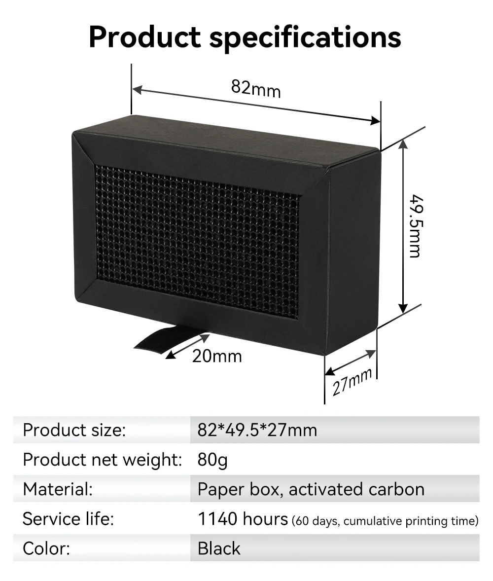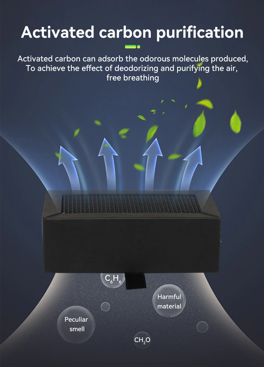 Melt extrusion printers will generate VOCs while printing because the heating temperature of ABS, PC, PA and other materials is relatively high, resulting in more VOCs. Materials such as PLA with lower melting points produce much fewer VOCs during printing. These VOCs are absorbed by our activated carbon air filter.