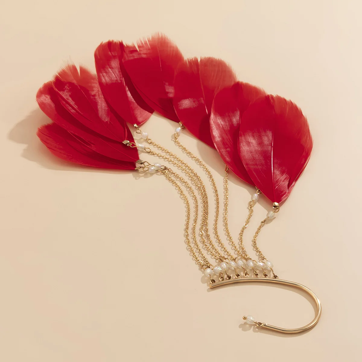 Material: alloy+imitation crystal+feather