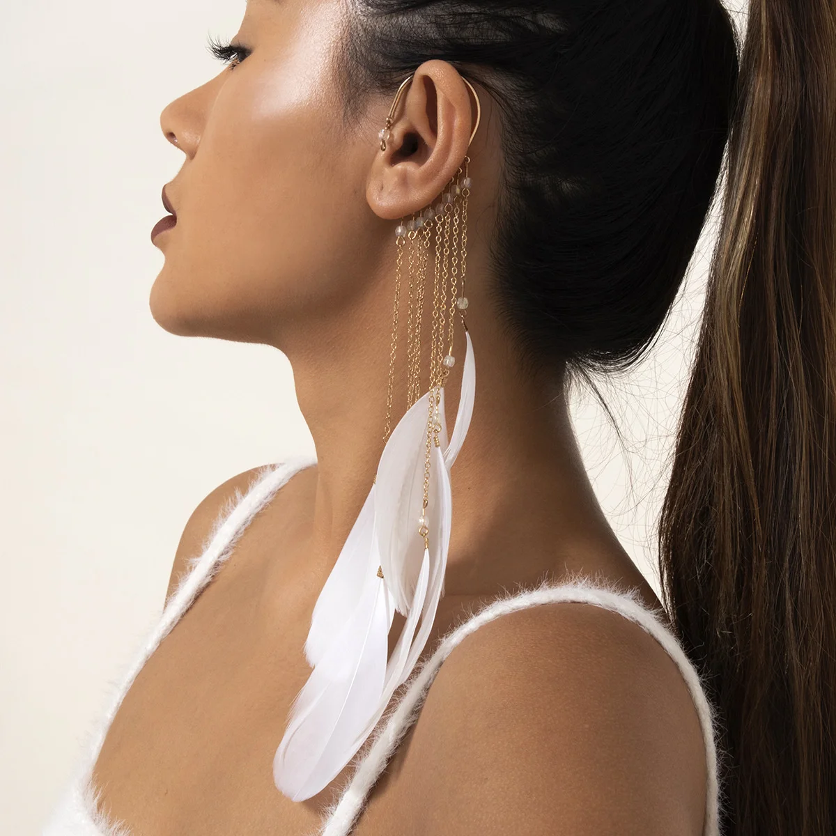1pcs Creative Bohemia Feather Long Tassel Clip Earrings For Women Personality No Piercing Feather Ear Cuff Party Jewelry