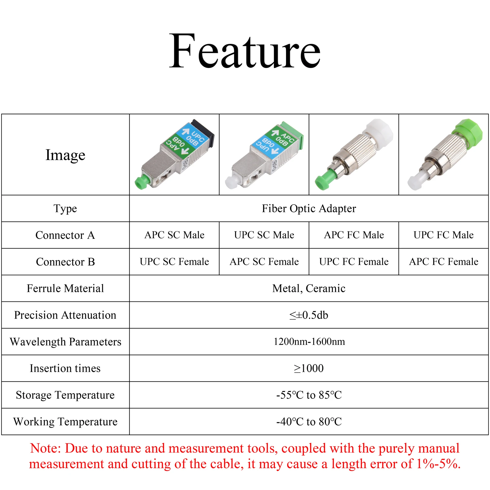 Note: Due to nature and measurement tools, coupled with the purely manual measurement and cutting of the cable, it may cause a length error of 1%-5%.