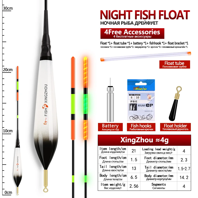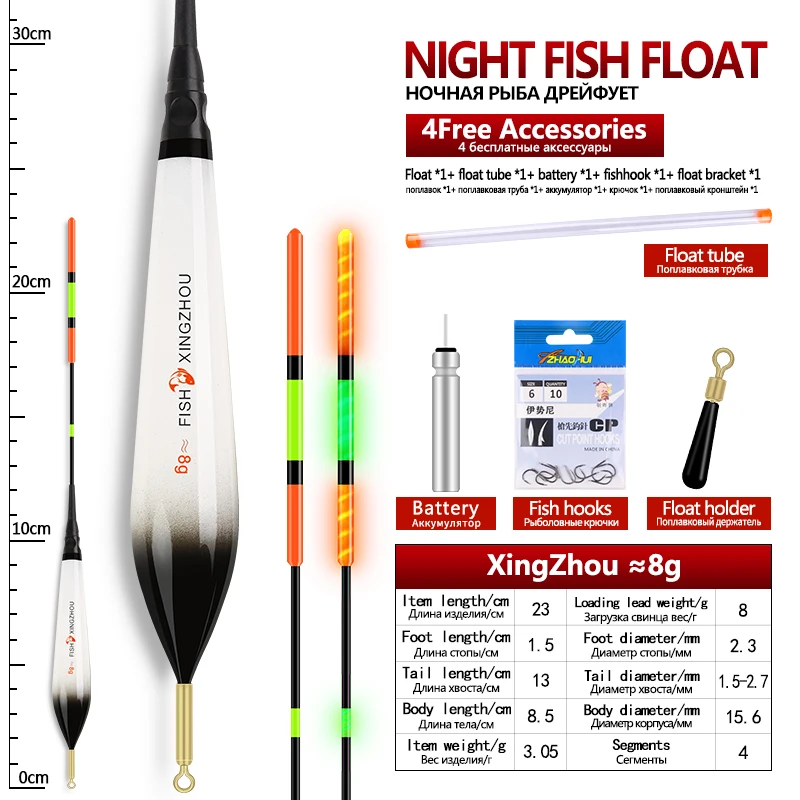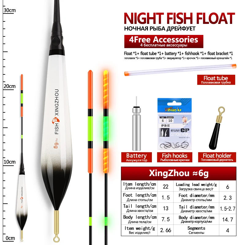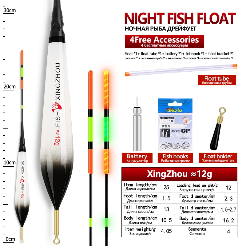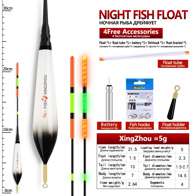 1Piece Composite Nano Electric Float+1 CR425+1 Float Tube+1 Bag Hooks+1 Float Rest Luminous Buoy Vertical Buoy Lake River Bobber