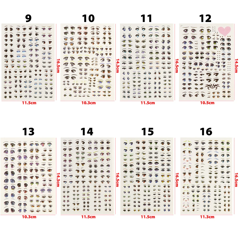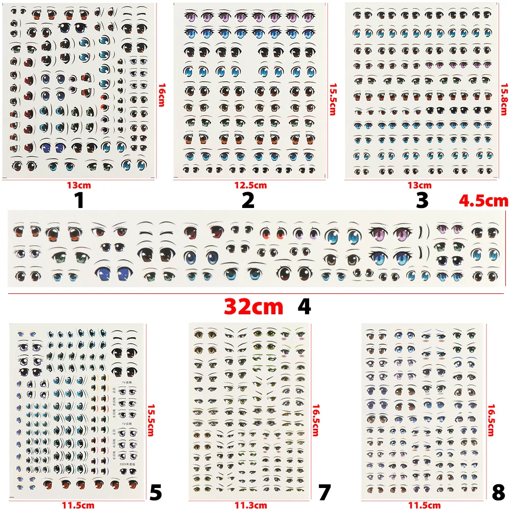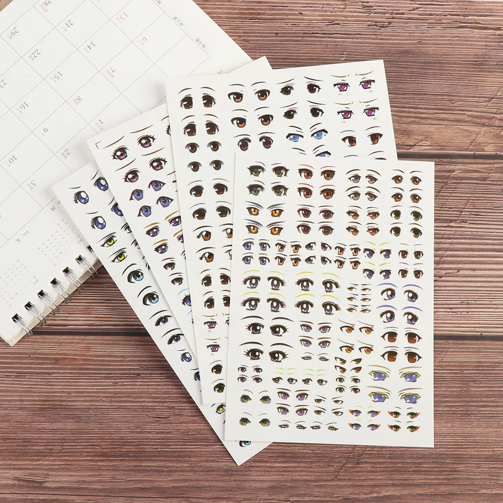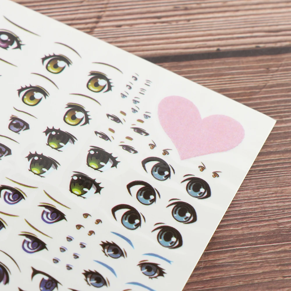 1Sheet Cute Sticker Cartoon Eyes Stickers Anime Figurine Doll Face Organ Paster Clay Decals DIY Doll Accessories Educational Toy