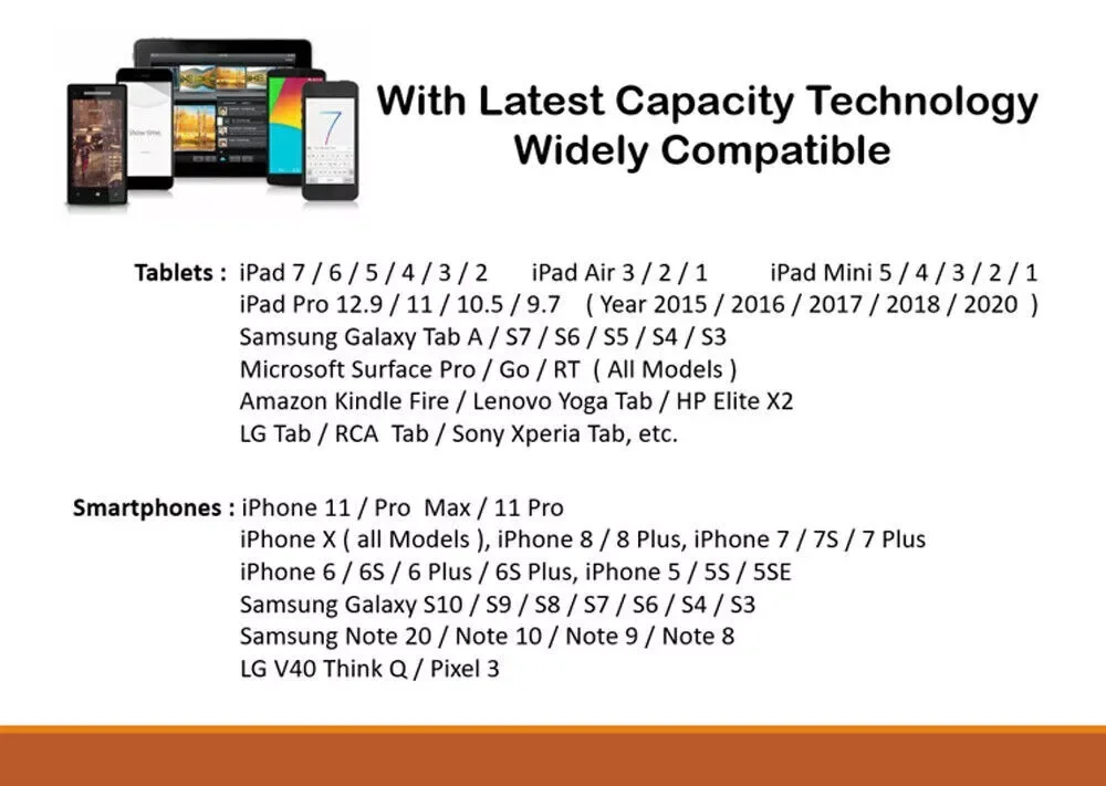 Compatible use: for Android phones, for ipad/iphone, all brands of flat-panel capacitive screen devices