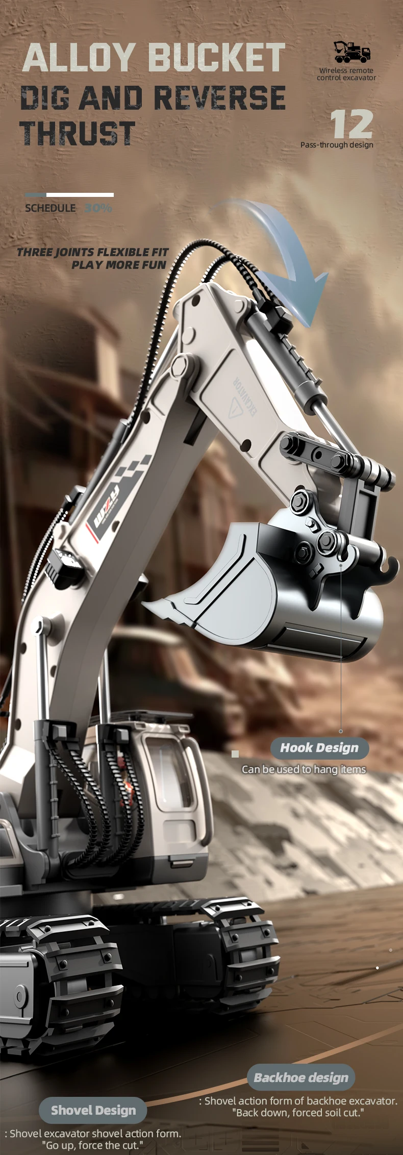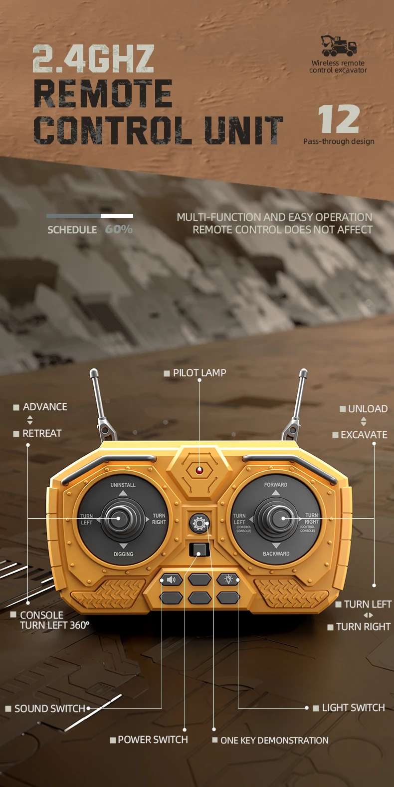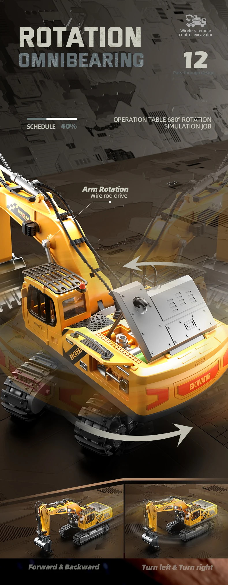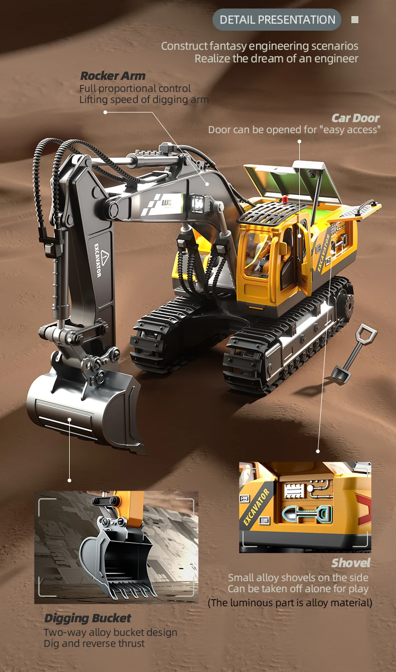 2.4Ghz 1:20 Rc Children’s Excavator Toy Engineering Vehicle Alloy Plastic Remote Control Excavator Children’s Remote Control Car