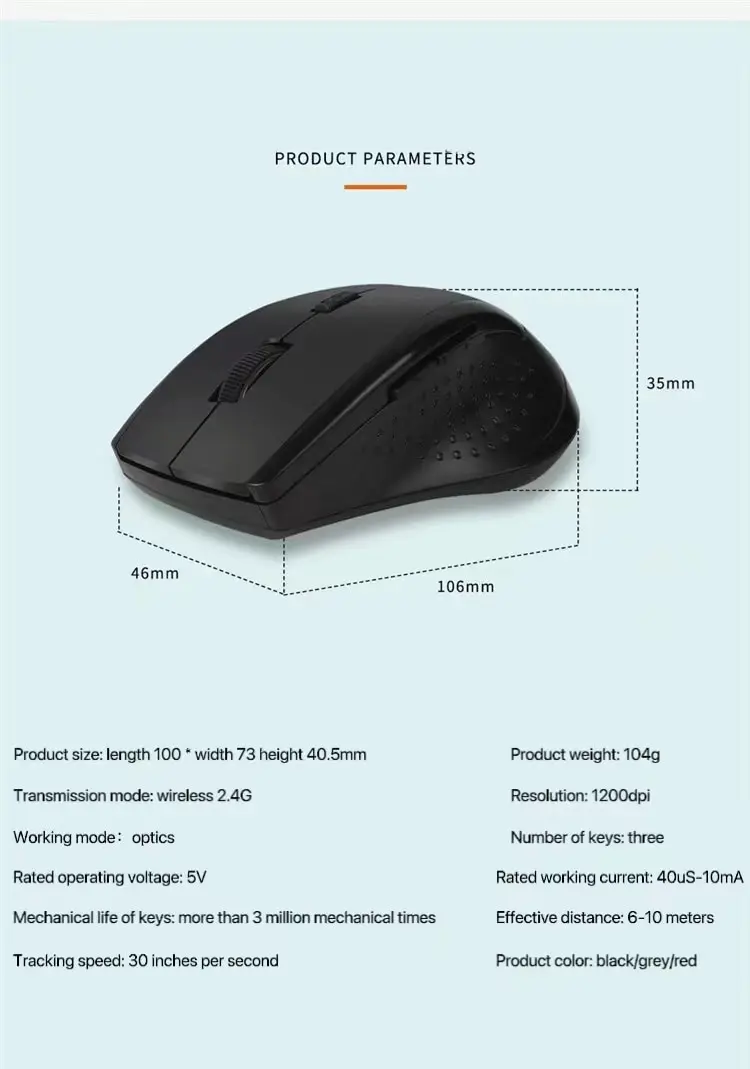 • Battery-Powered :No need for cords or cables, this mouse is powered by batteries for convenience.
