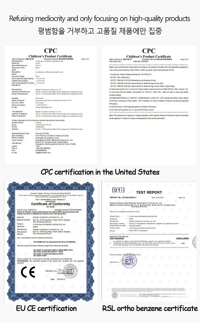 Product testing report: US CPC, EU CE, EU maternal and infant RSL ortho benzene testing