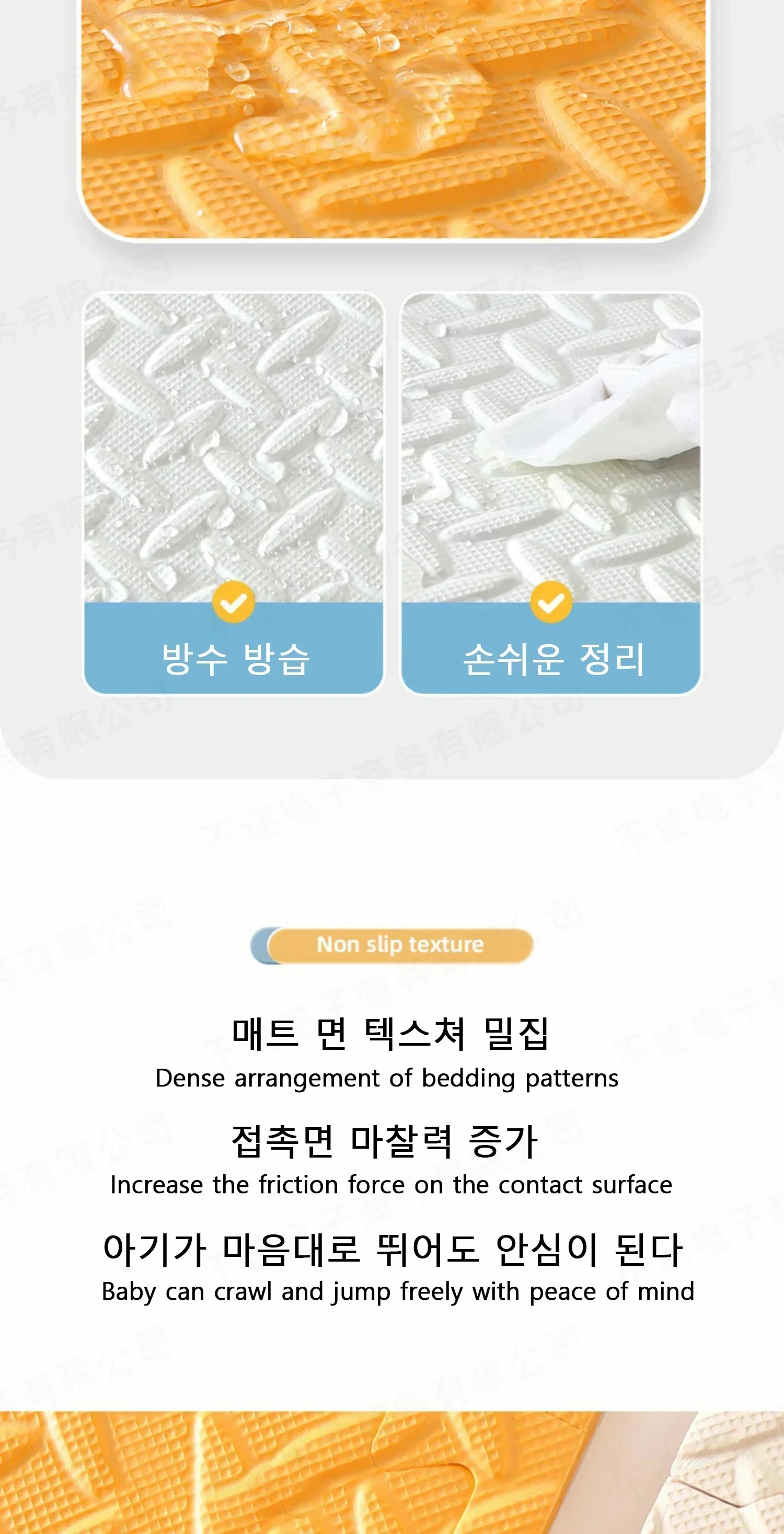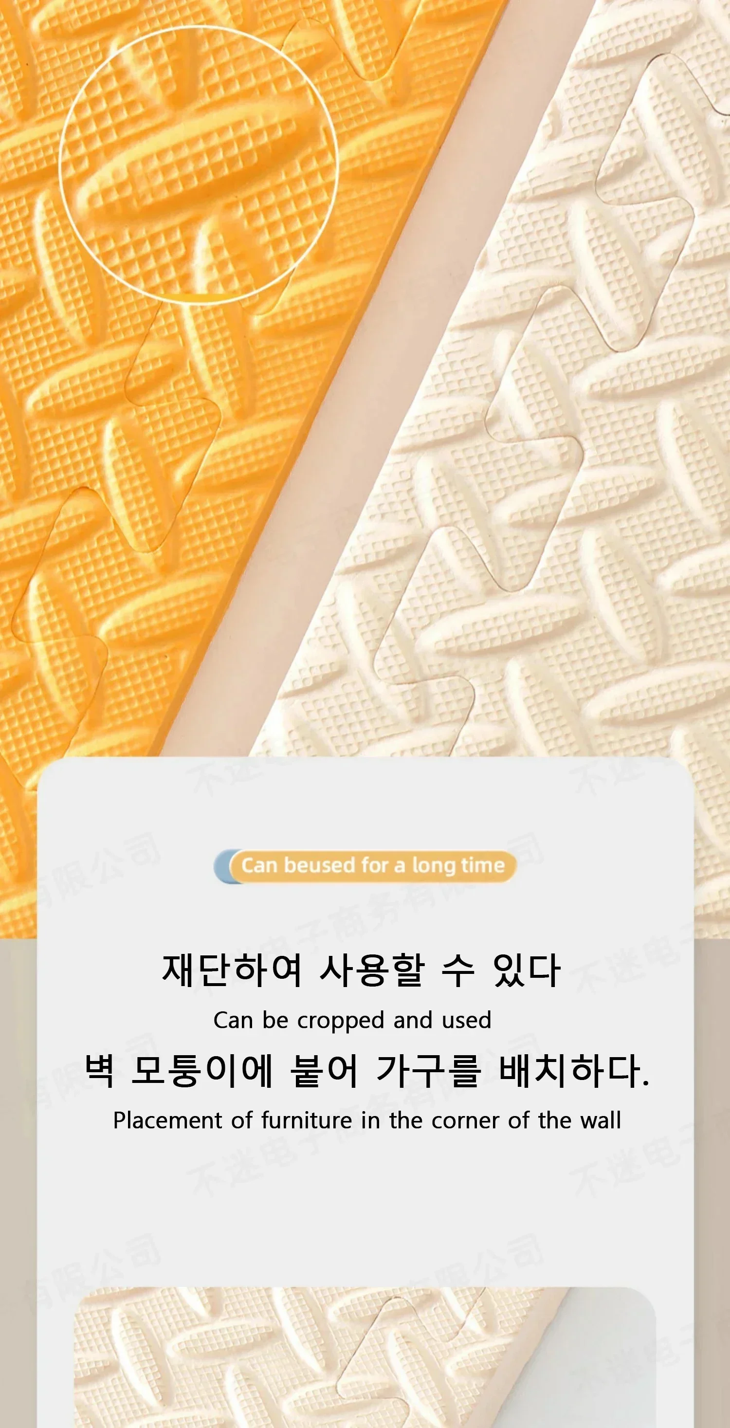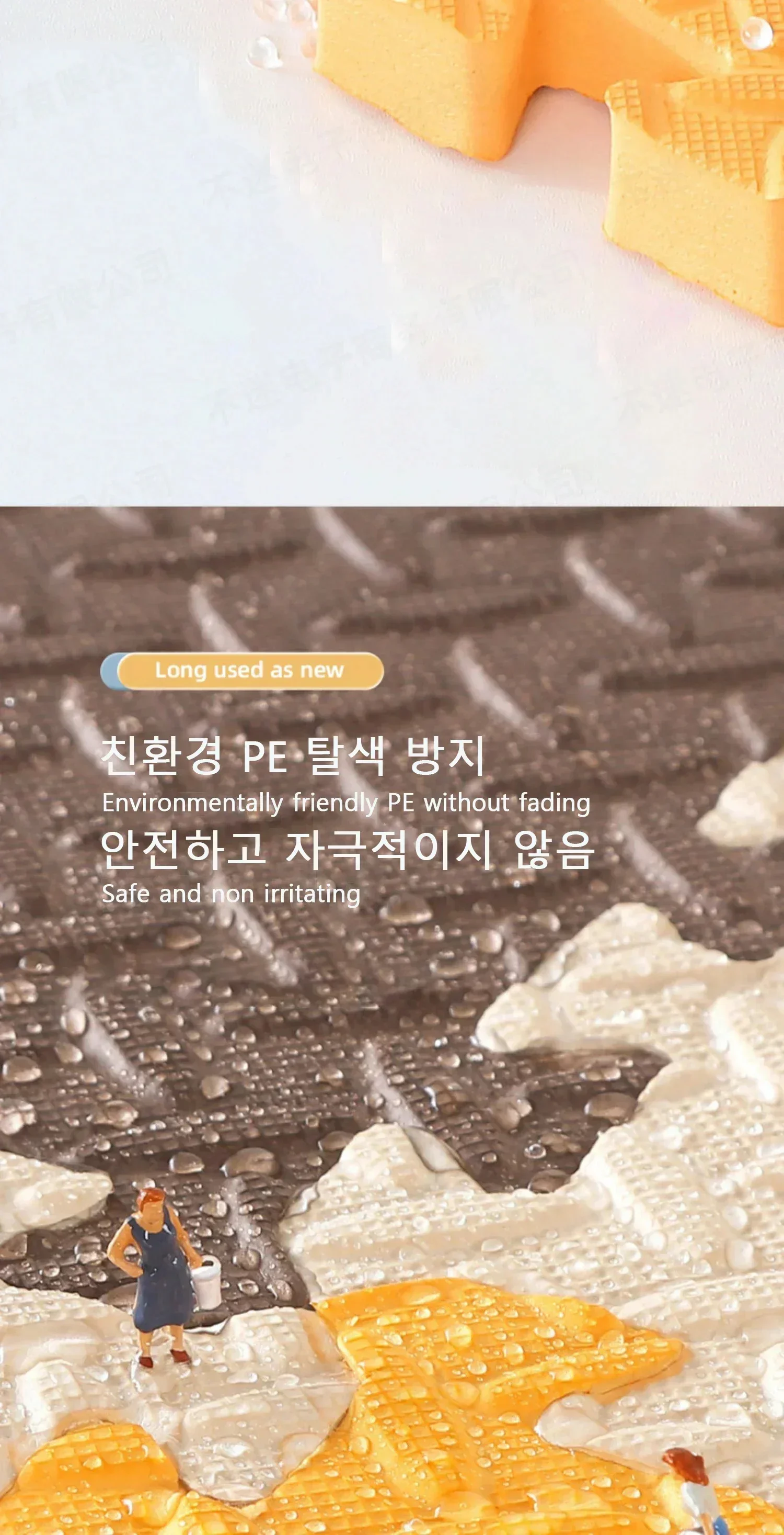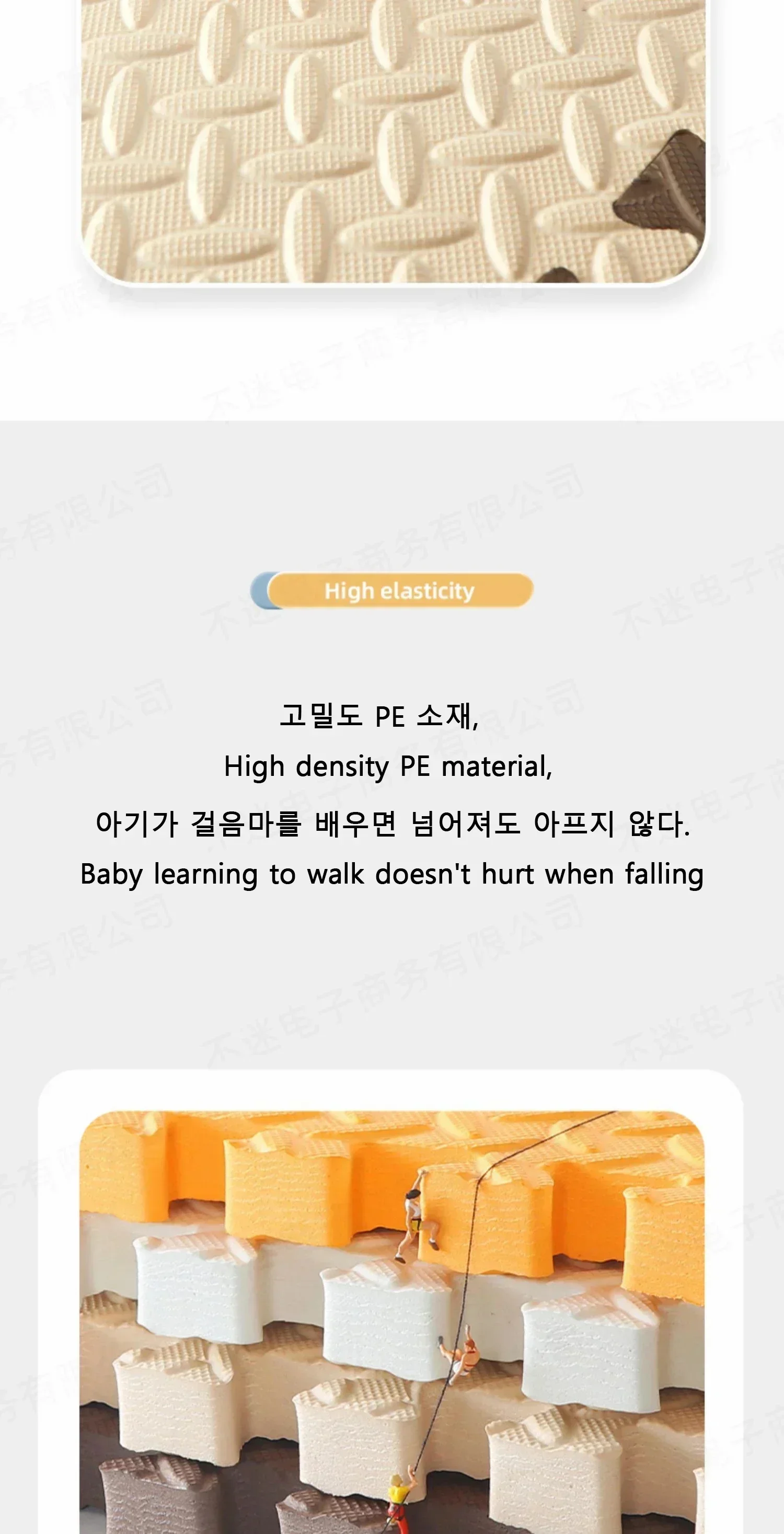 It is suitable for babies to learn crawling. The cushion is soft and comfortable, protecting the baby from harm, safe and odorless, tightly adhering to the skin without irritating it. It can be freely spliced, cut freely, non slip, and easy to store. After receiving it, it is recommended to clean it first and then dry it, as it can be used normally. (Can be used to wrap table corners and window edges after cutting)