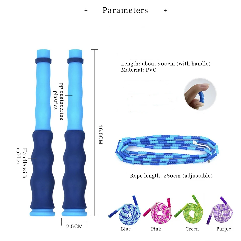 2.8m Length Adjustable Soft Beaded Skipping Rope for Kids Segment Jump Ropes