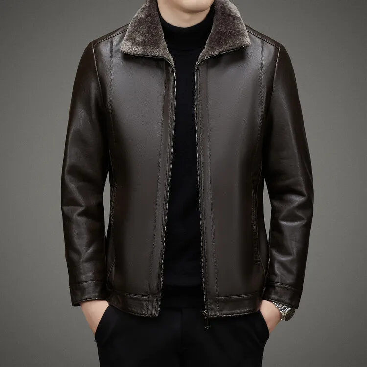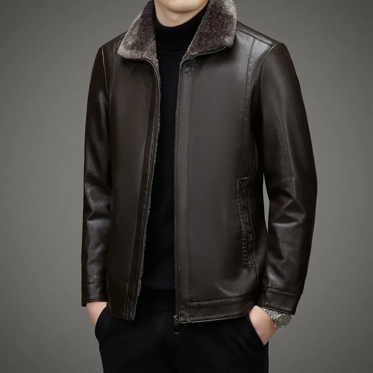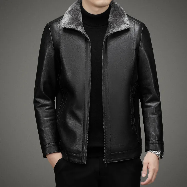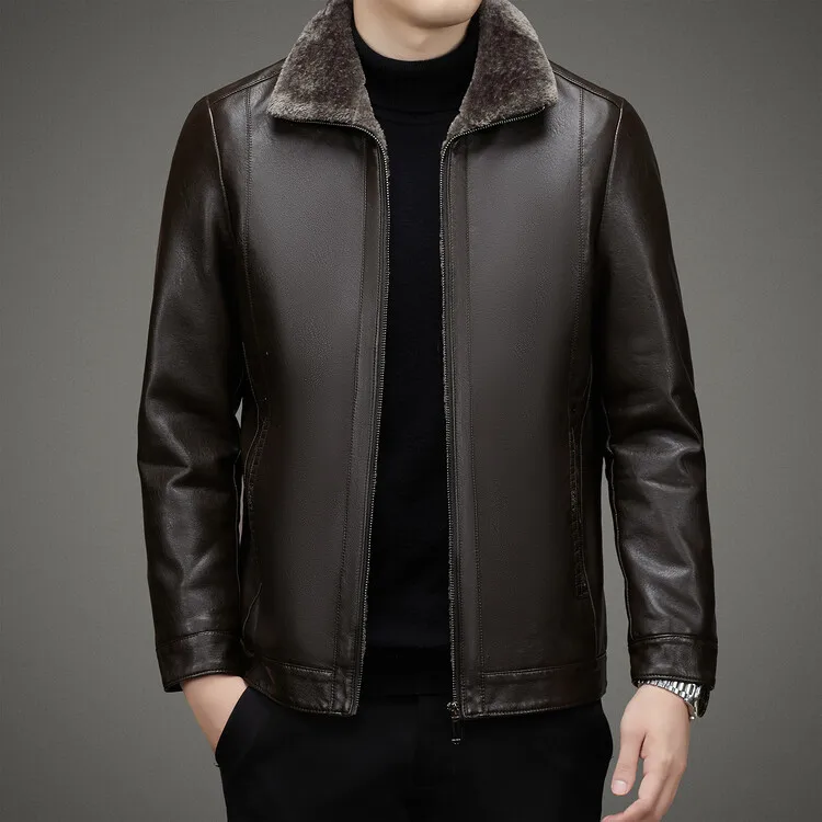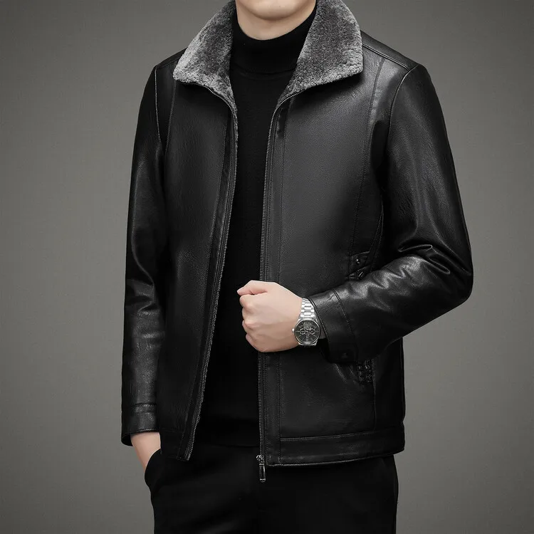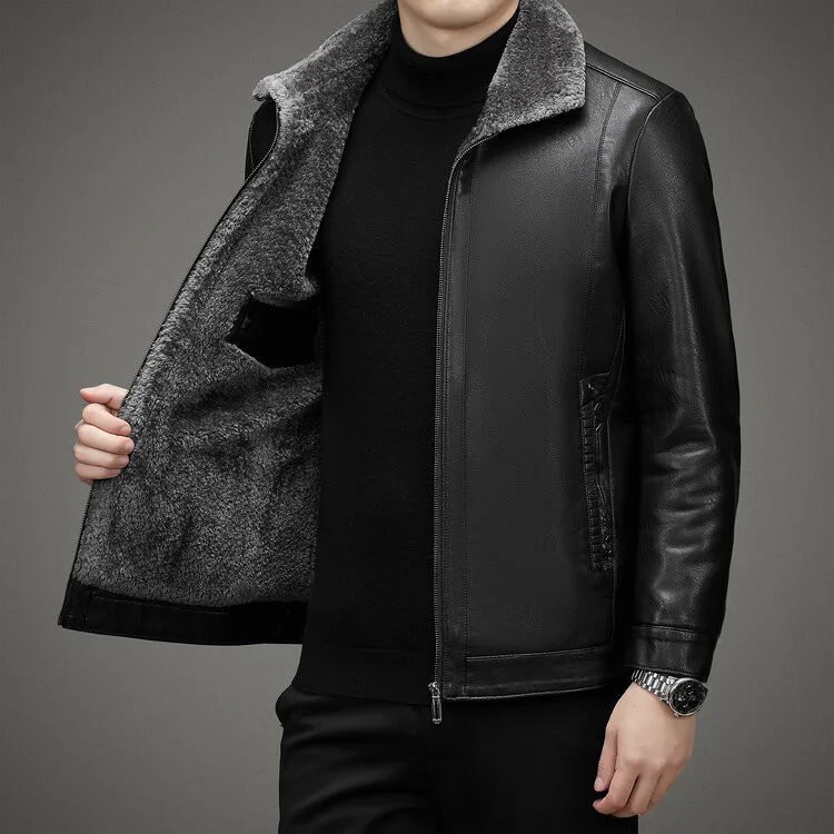2 Colors!2023 Autumn and Winter Men’s Leather Coat Thickened and Velvet Flip Collar Warm Leather Coats Mens Jacket