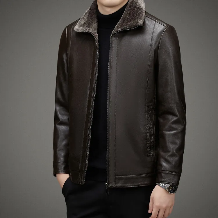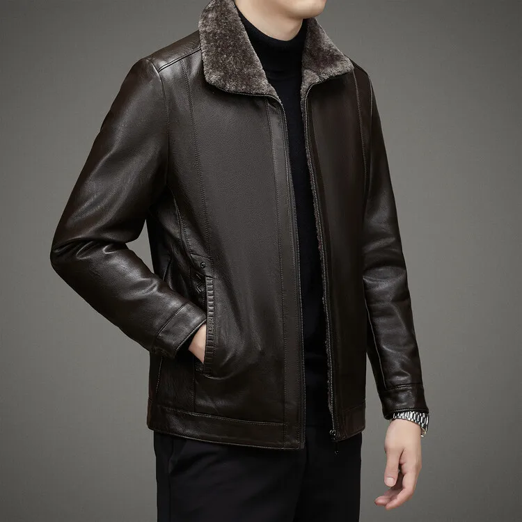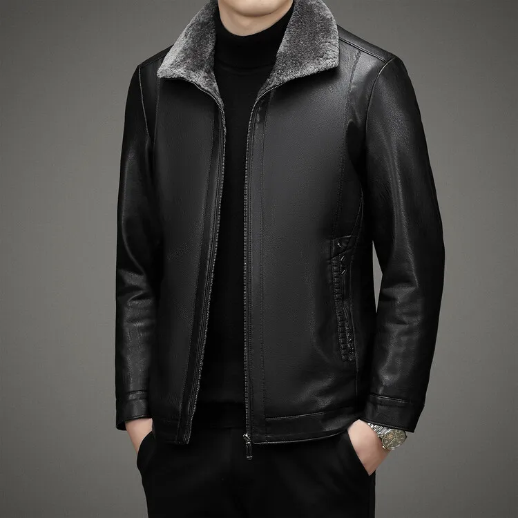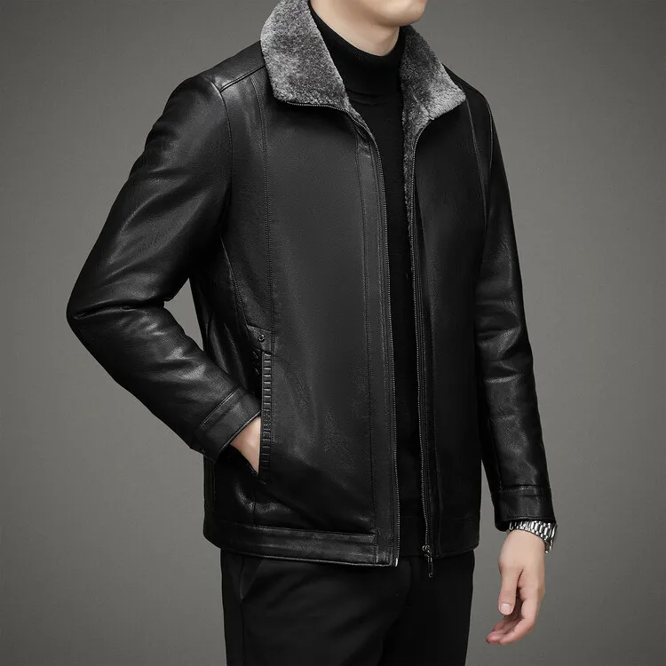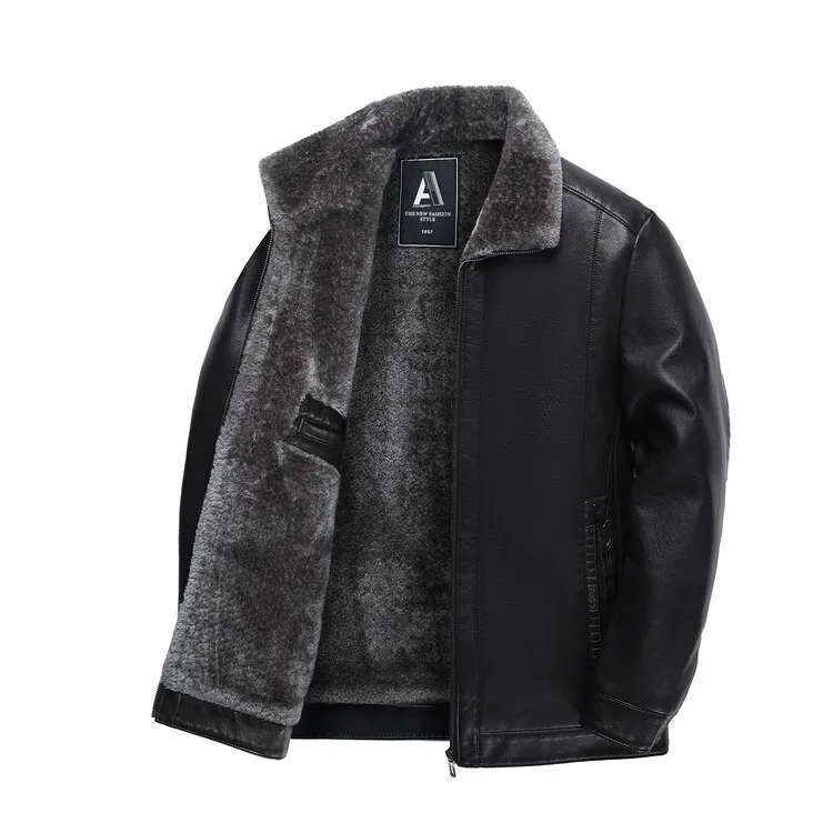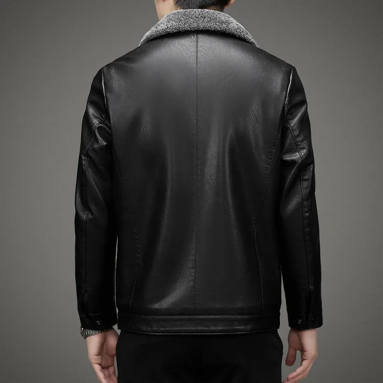 2 Colors!2023 Autumn and Winter Men’s Leather Coat Thickened and Velvet Flip Collar Warm Leather Coats Mens Jacket