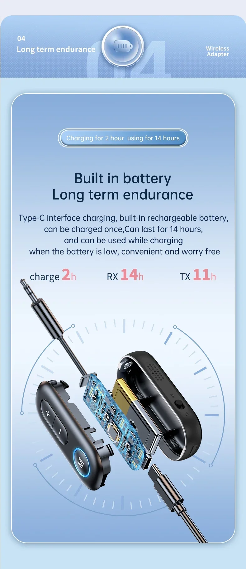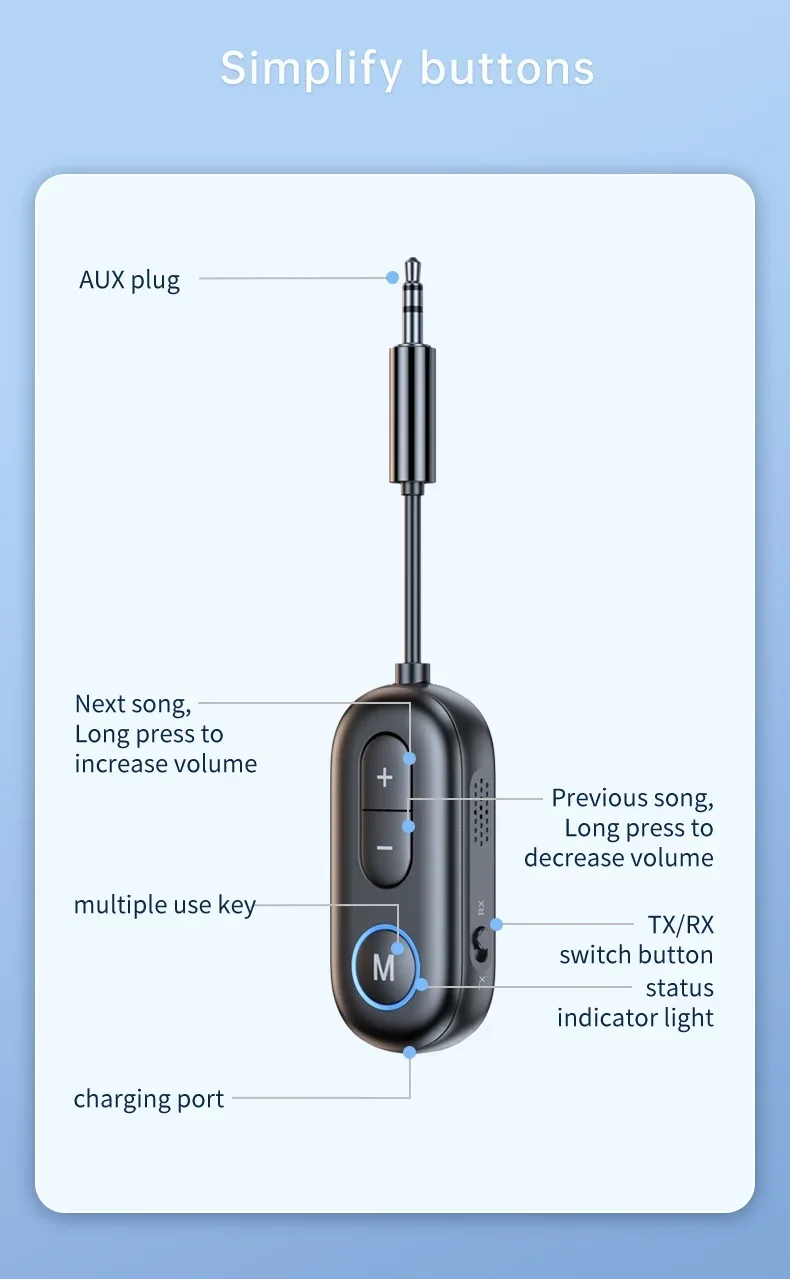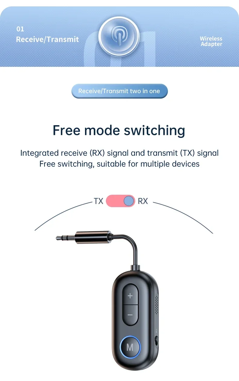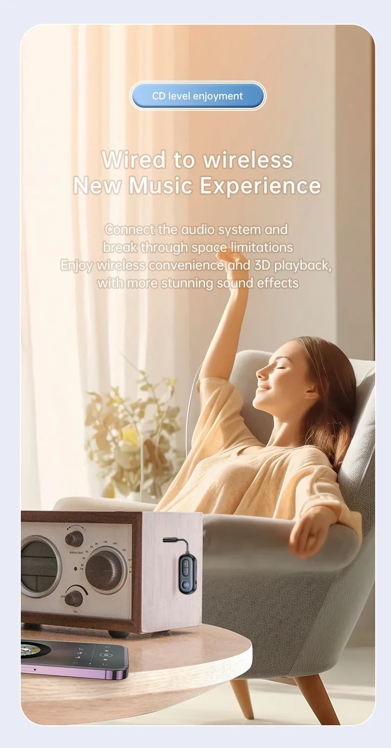 2 In 1 Bluetooth 5.3 Receiver Transmitter Stereo 3.5mm AUX Jack Aircraft Wireless Adapter Audio Mic for TV PC Car kit Headphone