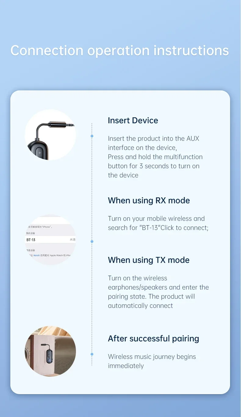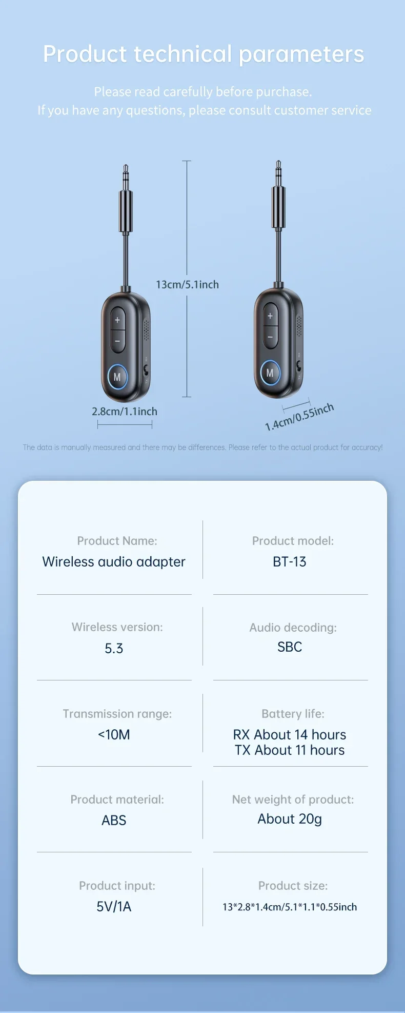 2 in 1 Bluetooth 5.3 Audio Transmitter Receiver 3.5MM AUX Hifi Stereo Music Wireless Adapter With Mic Aviation Plane Headsets Converter For Car Airplane TV PC Headphone Speaker Amplifier
