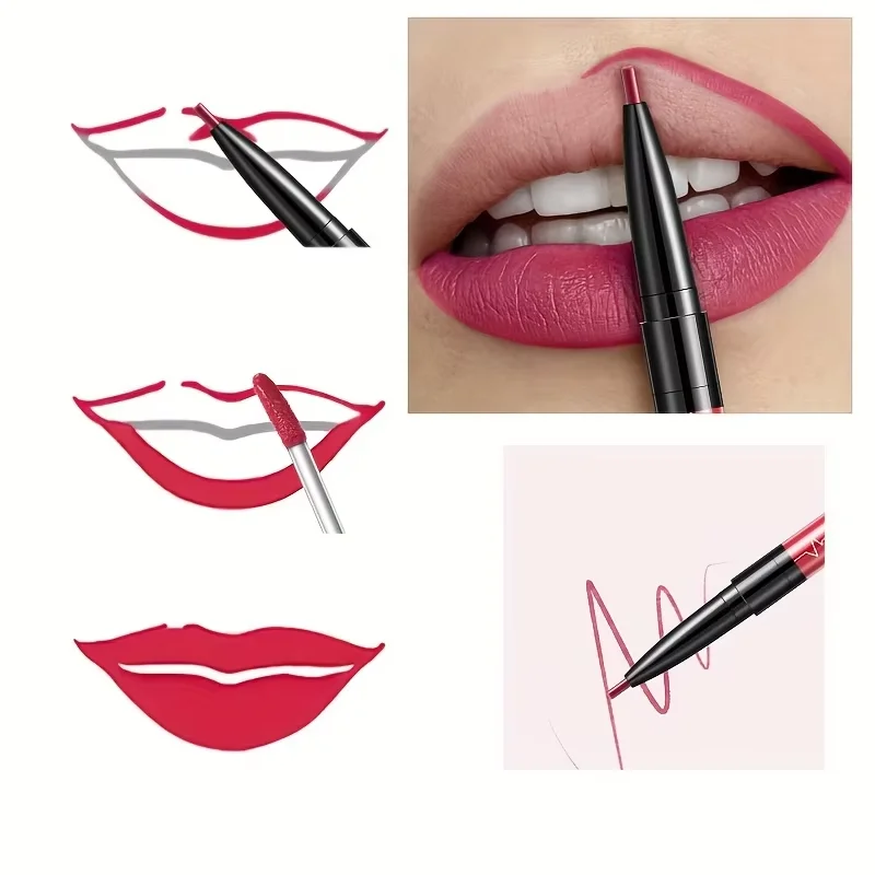 2 in 1 Double Head Matte Lip Gloss Plumping Lip Liner,Waterproof Non-Sticky Smooth Application and Long Lasting