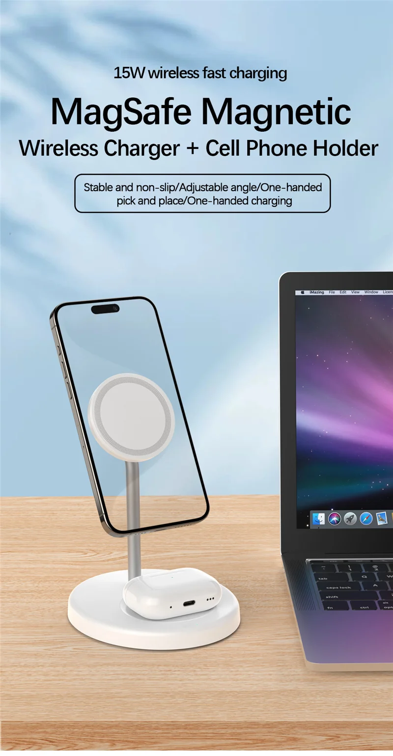 2 In 1 Magnetic Wireless Charger Stand Desktop Mobile Phone Holder Fast Charging Station for iPhone 15 14 13 12 Pro Max Airpods