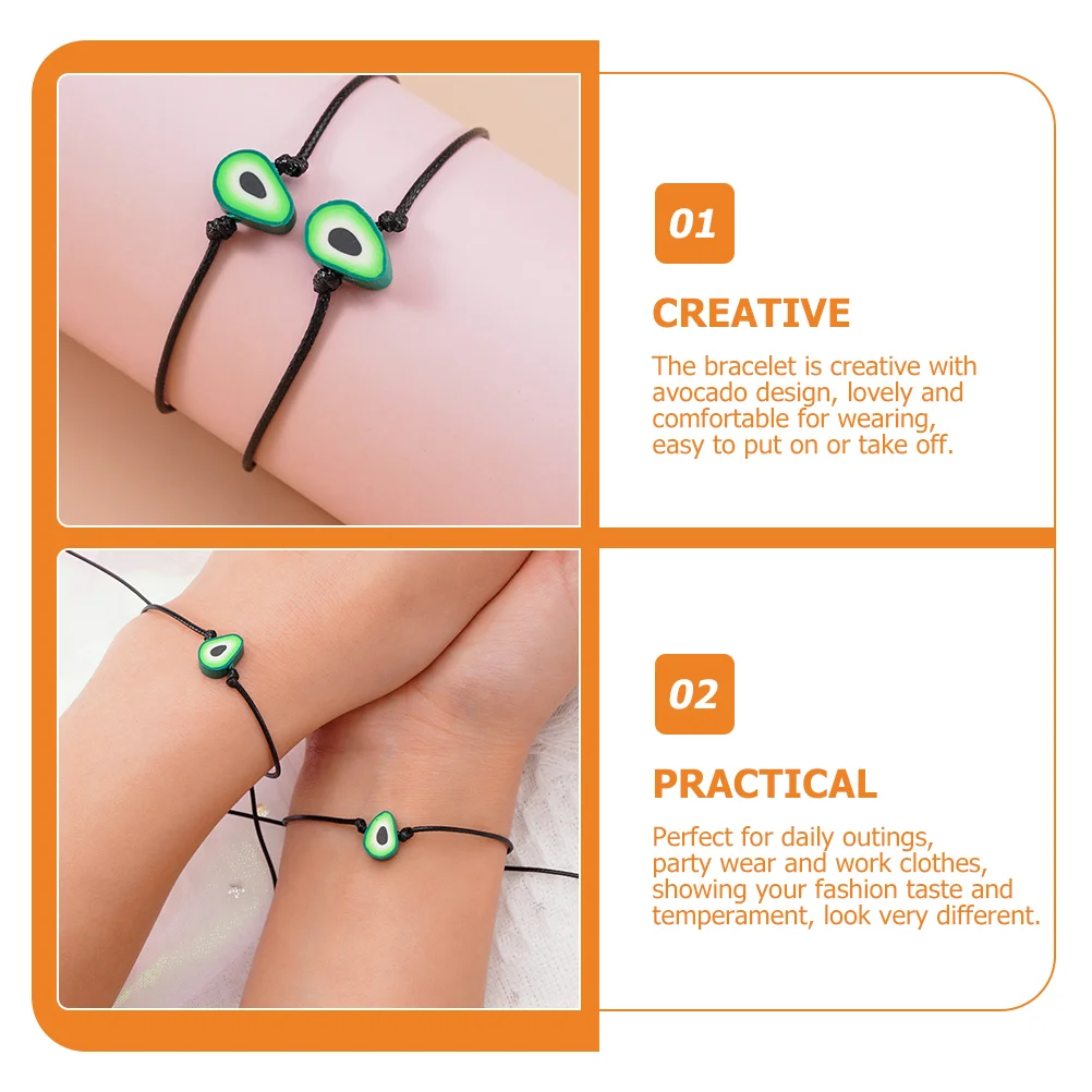 2 Pcs Avocado Bracelet Miss Lovers Handmade Friendship Wax Thread Stuff Women Bracelets